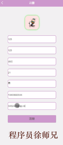 用户注册,在用户注册页面可以填写用户名、密码、姓名、年龄、性别、手机、邮箱、头像等信息,进行注册如图5-1所示。