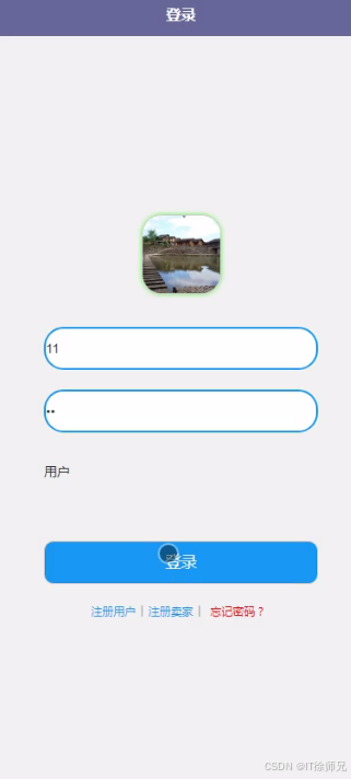 用户登录,在用户登录页面填写账号、密码进行登录,如图所示。