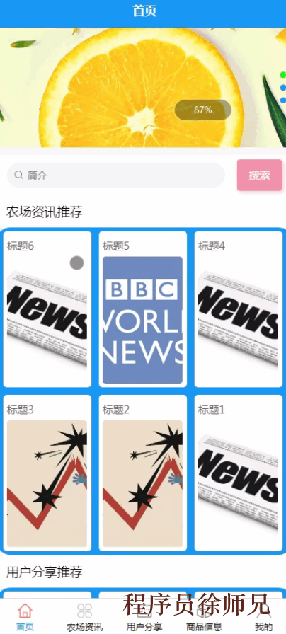 用户登录到农场驿站平台可以查看首页、农场资讯、用户分享、商品信息、我的等内容,如图5-2所示。