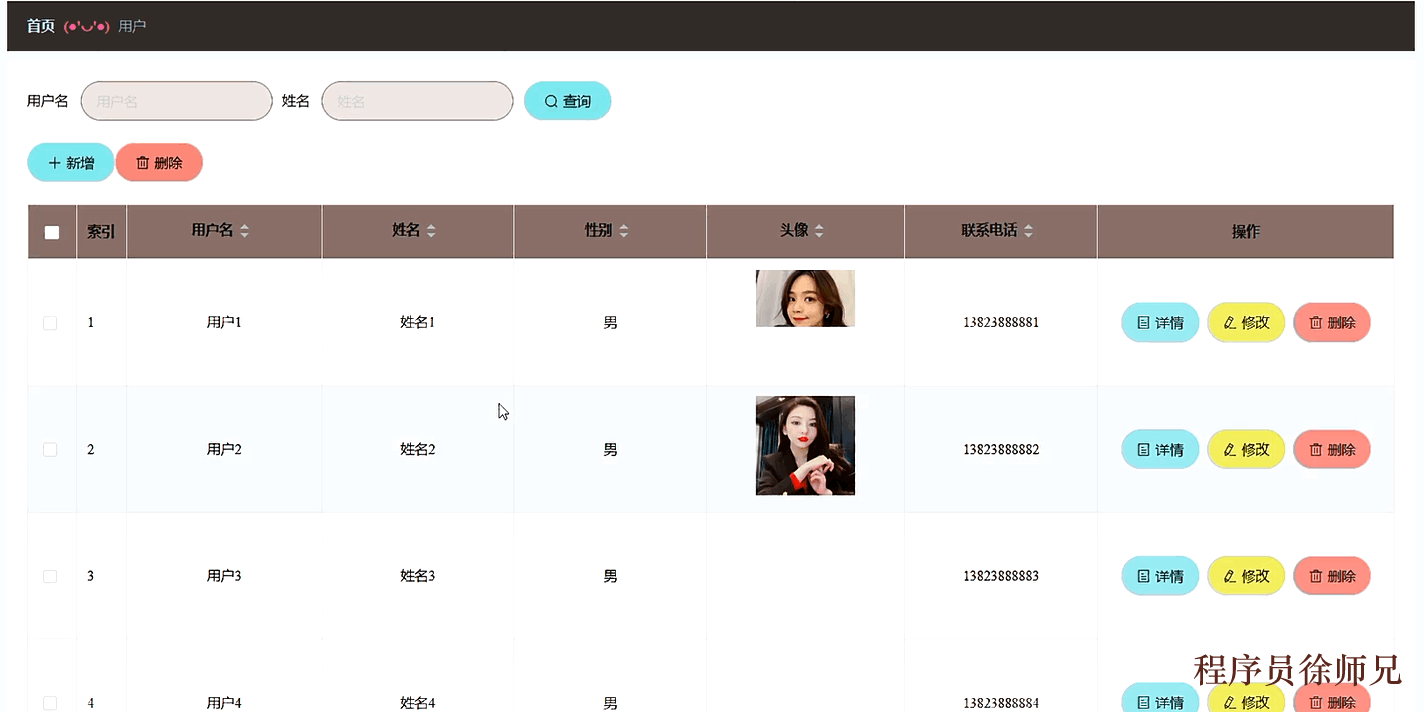 管理员登录后可添加、修改和删除用户信息,用户管理界面如图5.8所示。