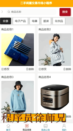 管理员可管理商品信息,对已有商品信息可进行编辑和删除,商品管理界面展示如图5.10所示。