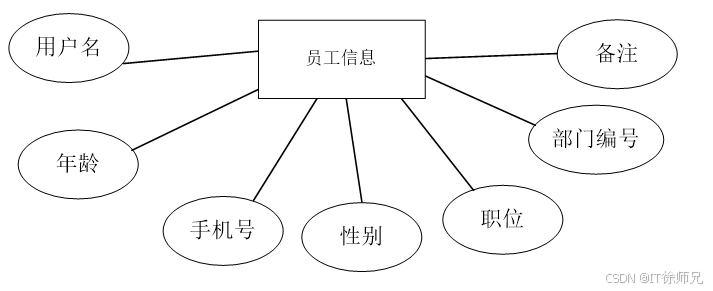 (5)员工信息属性包括用户名、年龄、手机号、职位、部门编号等,员工信息ER图如下图所示: