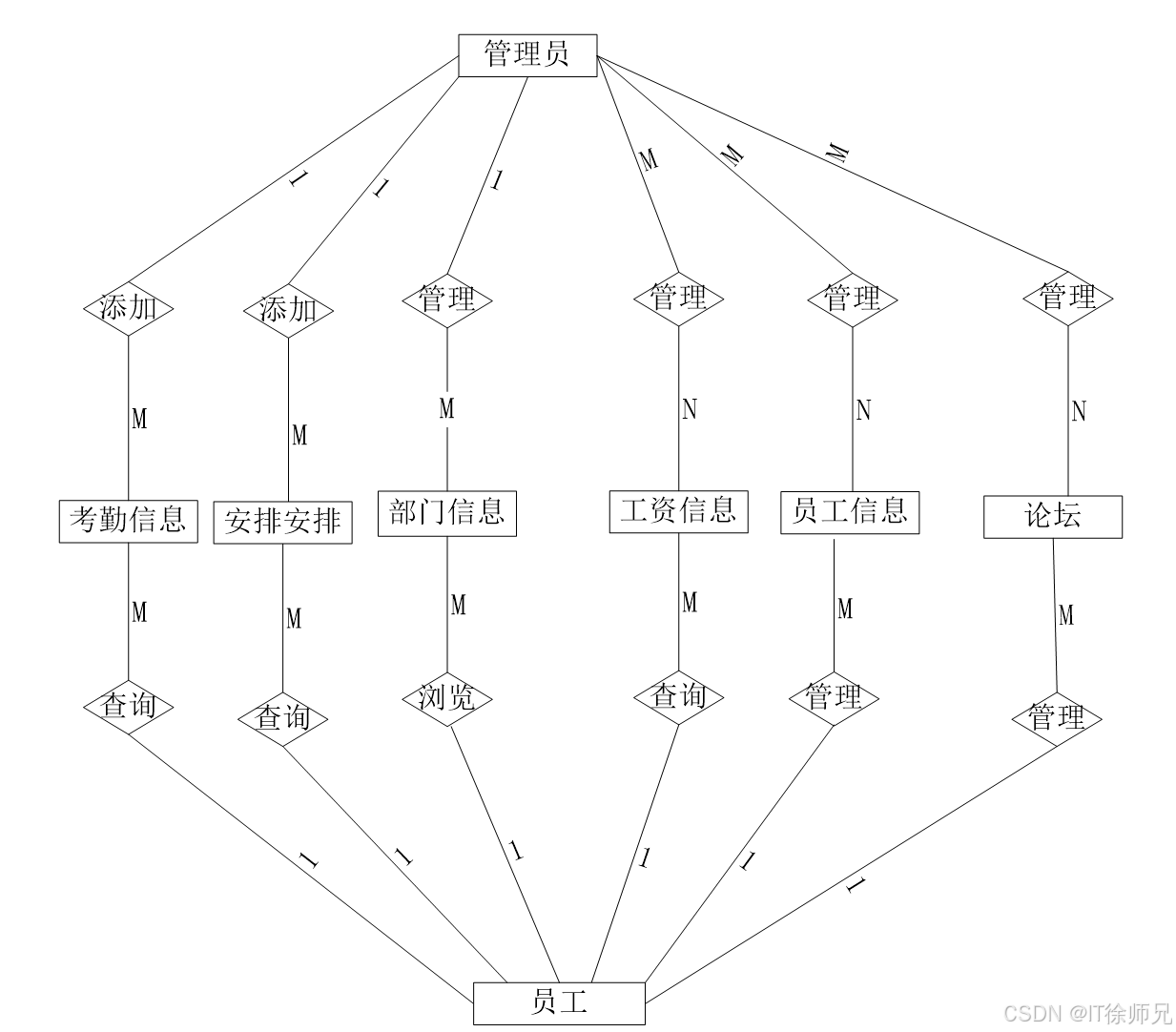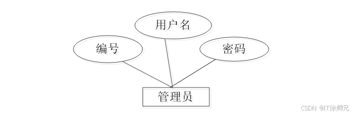 (1)管理员的属性包括编号、用户名和密码,管理员的ER图如下图所示: