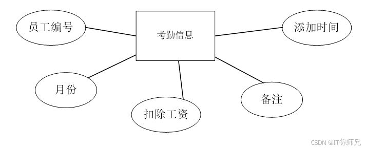(4)考勤信息的属性包括编号、月份和扣除工资等,考勤信息ER图如下图所示: