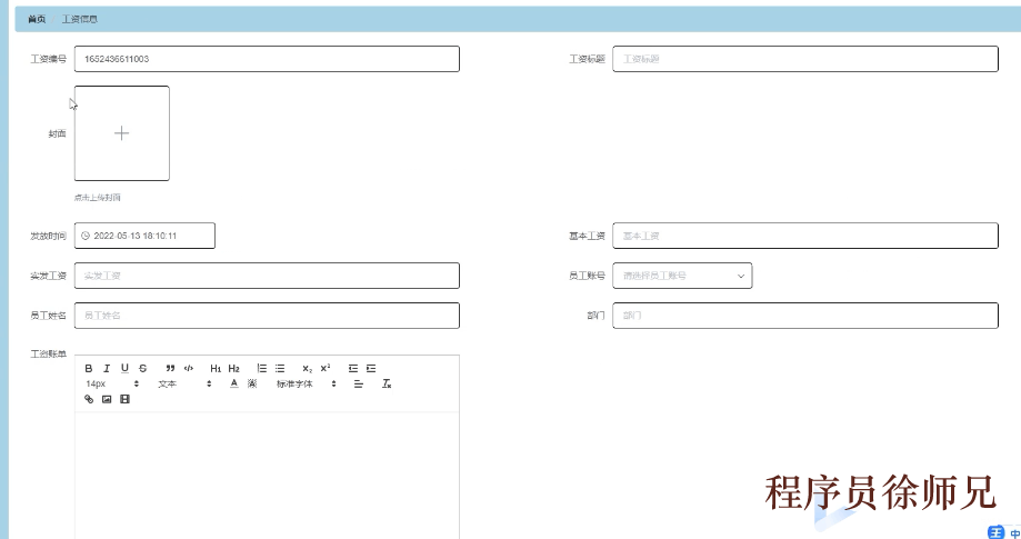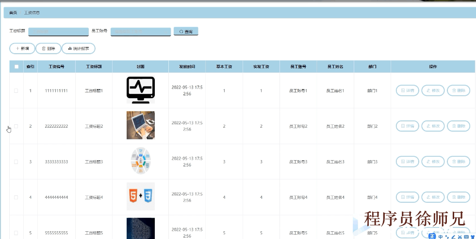 系统里展示的工资信息都是由管理员在系统进行添加和维护的,管理员可以上新工资信息,也可以修改工资信息,当工资信息被淘汰时也可以直接进行删除,工资信息管理功能的界面实现效果如下图4.5所示: