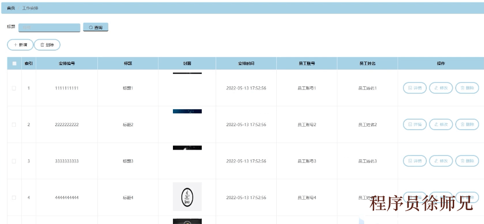工作安排信息是工资的重要组成部分,管理员可以添加工作安排信息,员工可以查询工作安排信息,工作安排管理信息功能的界面实现效果如下图4.3所示: