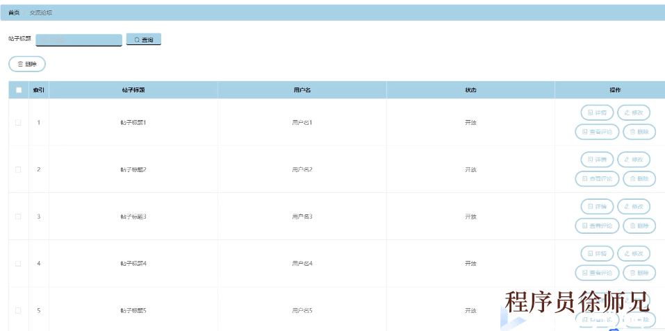 管理员可以审核帖子信息,员工可以发布帖子信息。交流论坛功能的实现界面如下图4.9所示: