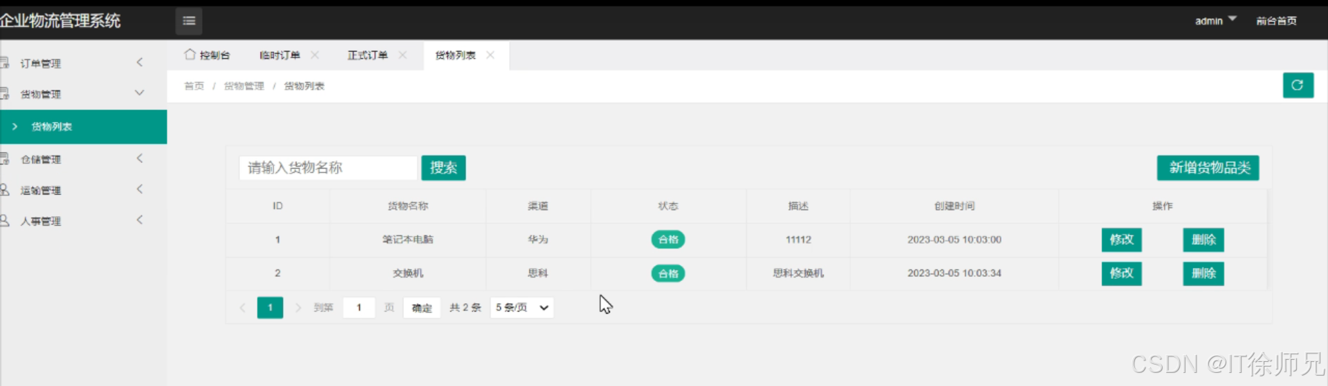 可以进行货物的入库管理,包括商品信息的修改,也可以根据商品名称查询商品信息。
