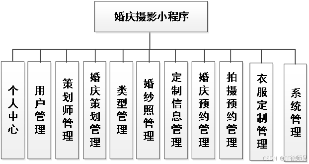 Java基于SSM框架的婚庆摄影小程序,有管理员,策划师,用户三个角色。管理员功能有个人中心,用户管理,策划师管理,婚庆策划管理,类型管理,婚纱照管理,定制信息管理,婚庆预约管理,拍摄预约管理,衣服定制管理,系统管理等。策划师主要负责婚庆相关的策划工作,用户可以注册登录,可以婚庆预约,拍摄预约,衣服定制,收藏相关信息等。