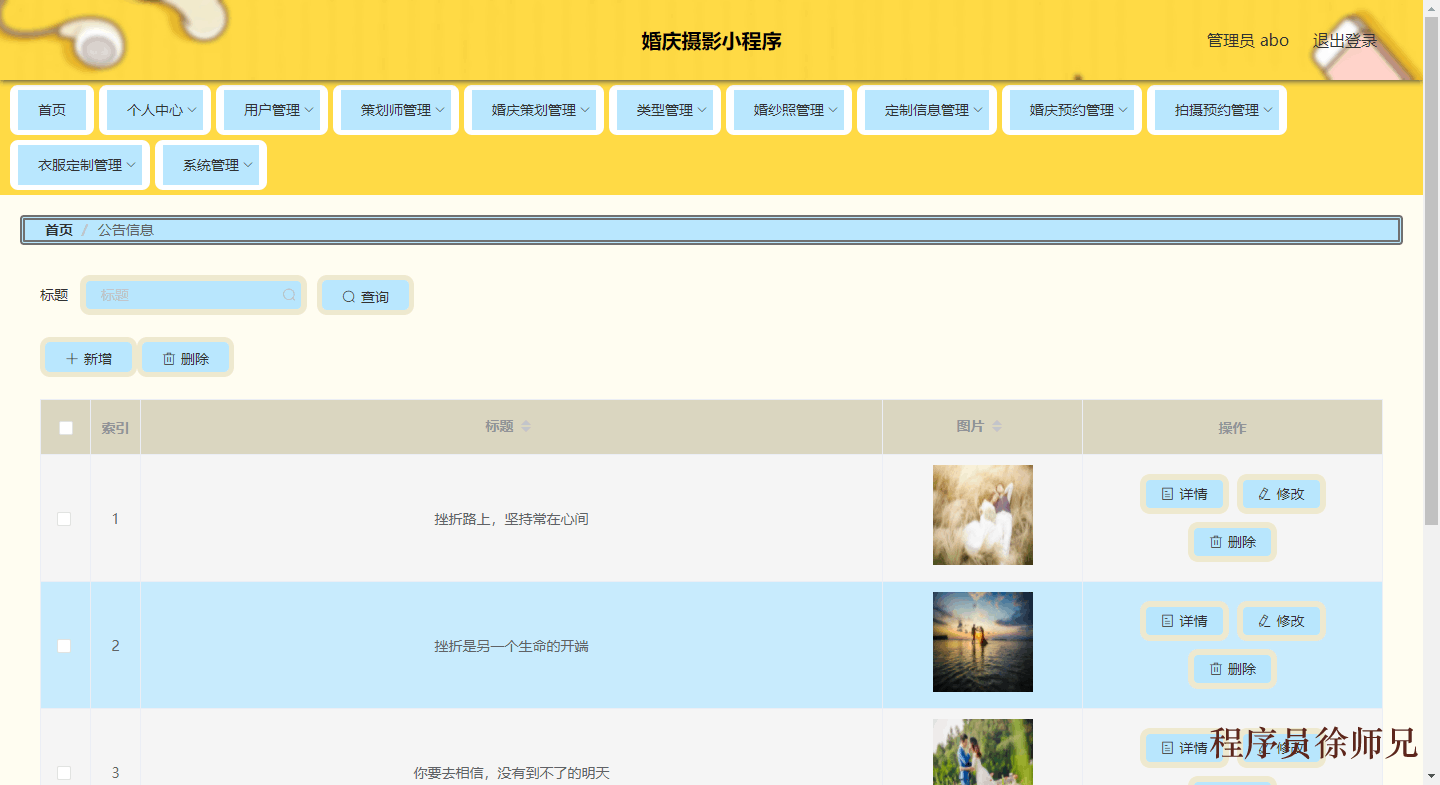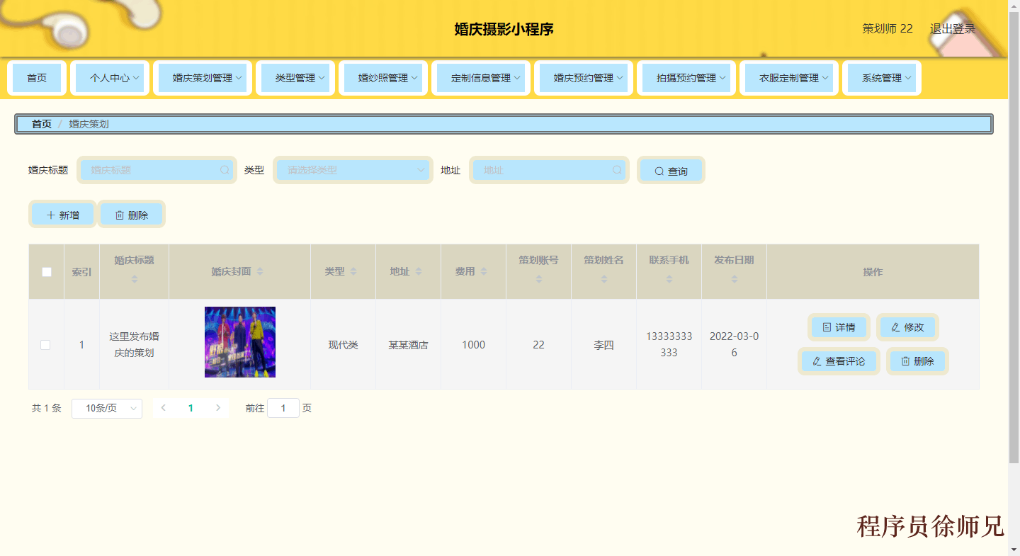 策划师可以对婚庆策划信息进行添加,修改,删除,查询操作。