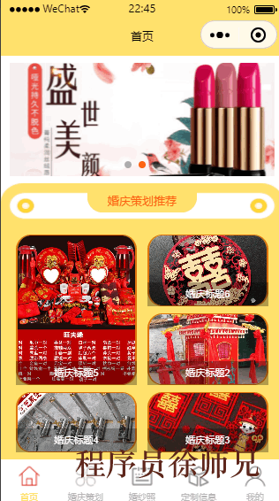 微信小程序输入正确的账号密码后就会默认进入首页显示界面。首页主要有轮播图,搜索框,以及下面的导航为主要组成部分。