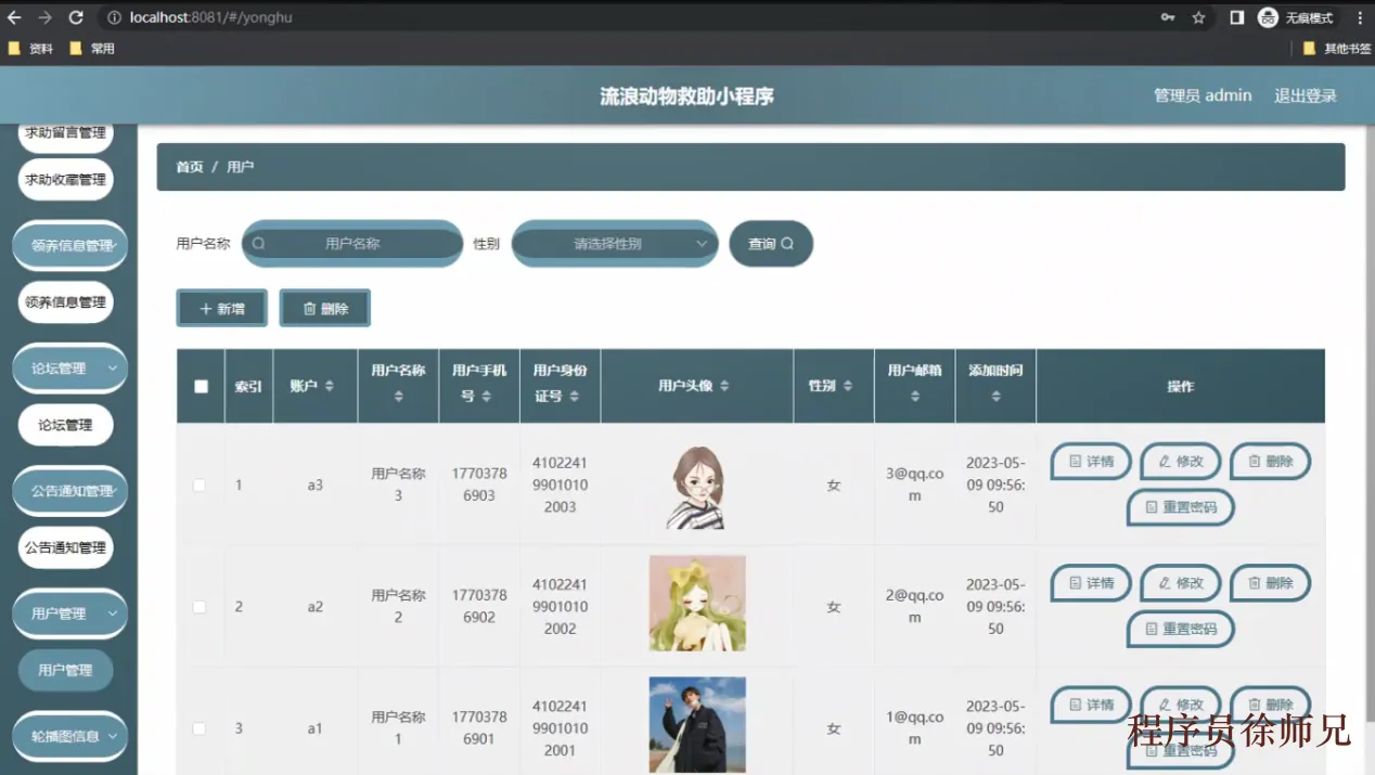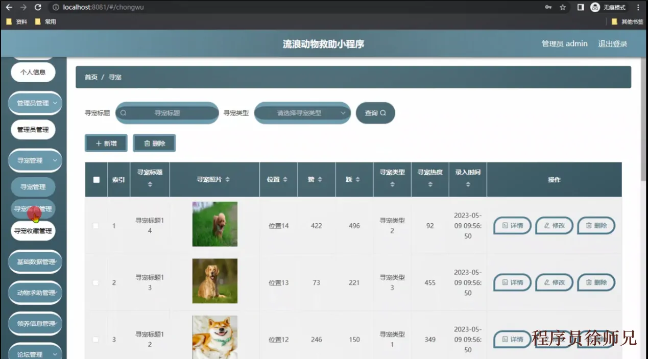 第一点:流浪动物救助小程序的实际运用,可以帮助管理人员在短时间内完成信息处理工作。
