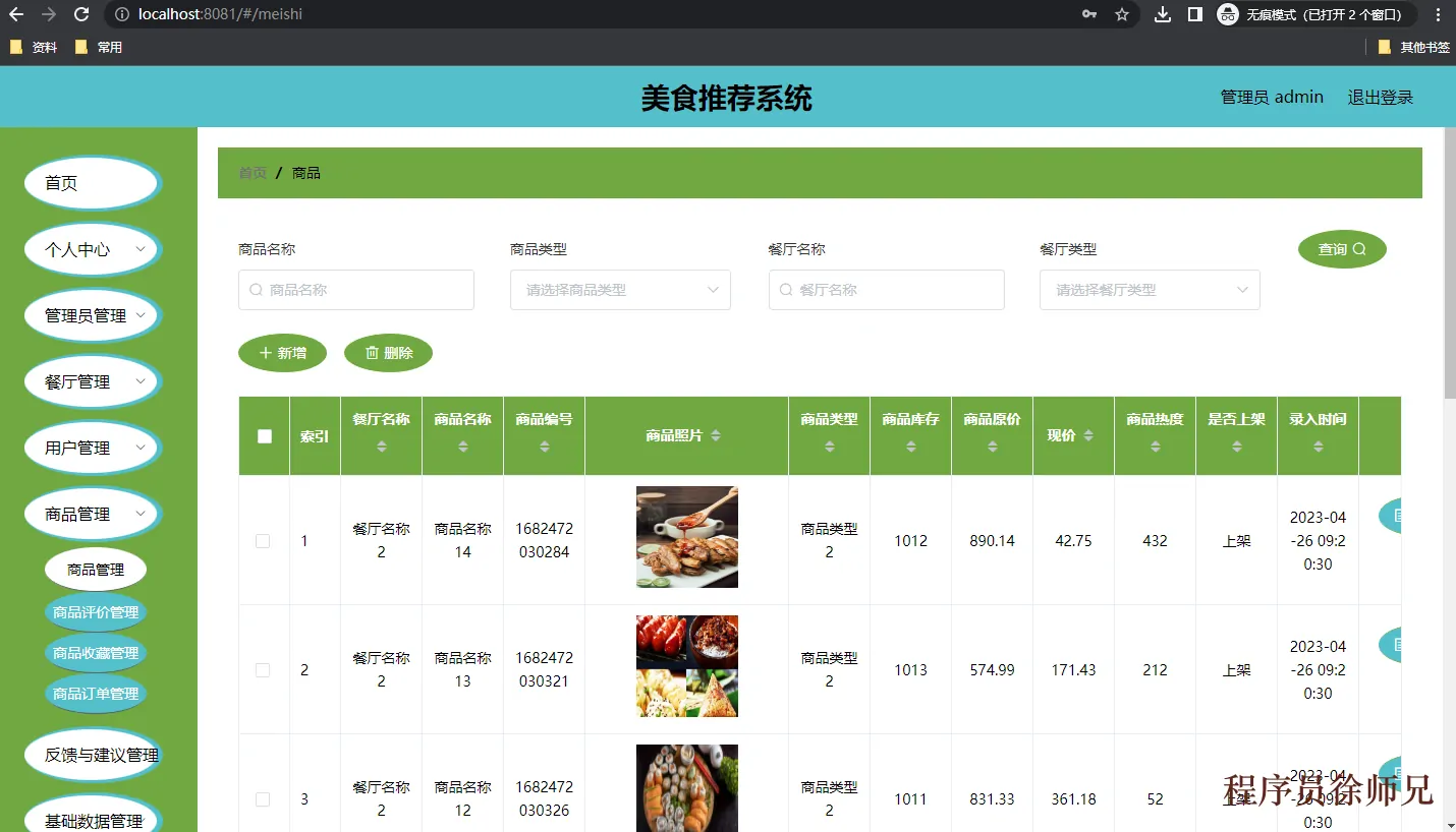 Java基于SpringBoot的美食推荐系统小程序,采用Java语言进行开发,并利用MySQL数据库构建数据表以存储系统的相关数据。该系统不仅能够展示信息并提供相应的服务,还能对美食推荐系统信息进行有效管理,包括信息的添加、查询和更新。