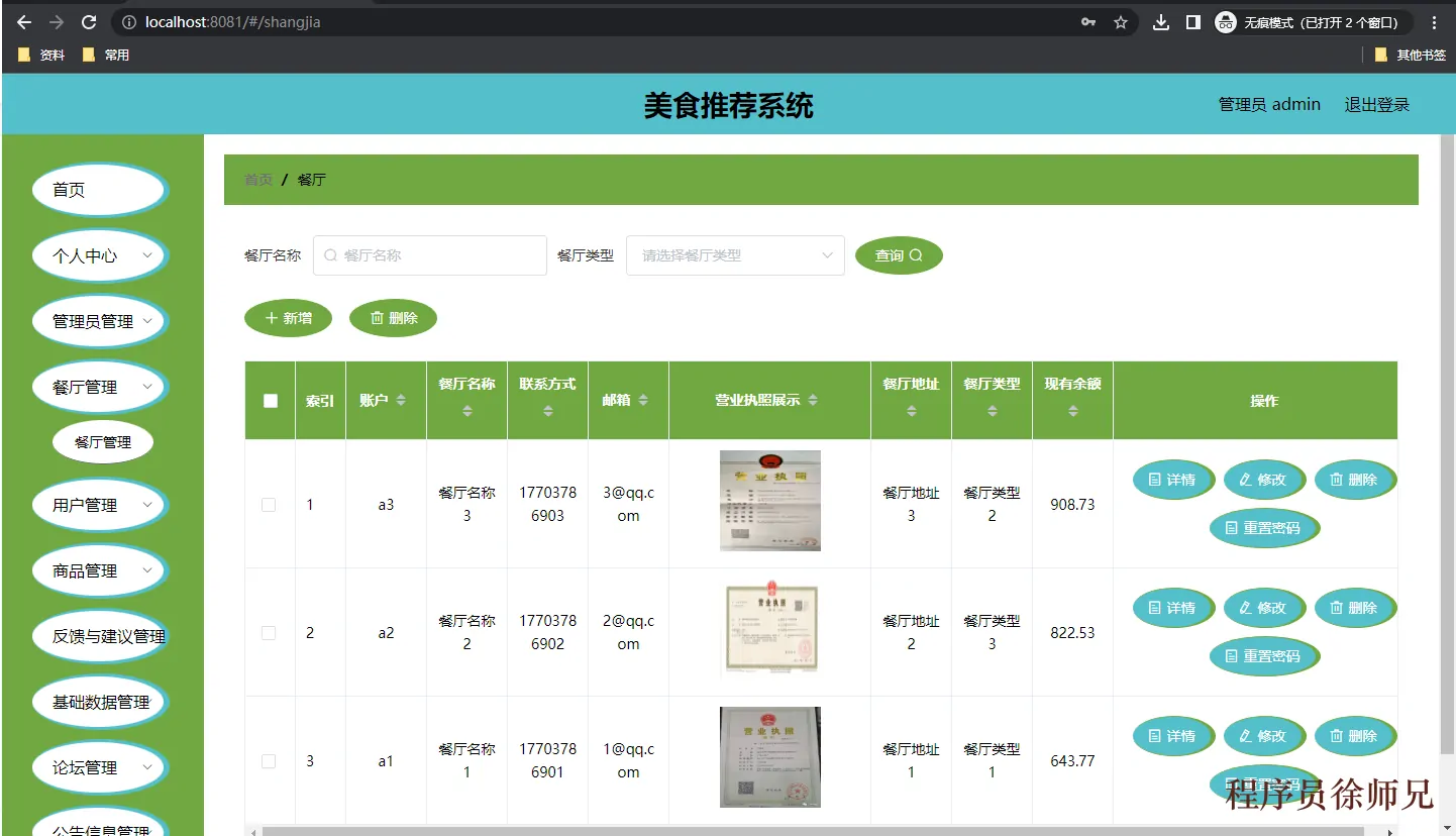 概括而言,该美食推荐系统实现了信息的集中化管理,具备以下优势:安全性高,处理效率高,存储容量大,且成本较低。它能够有效降低信息管理的成本,实现信息管理的自动化。