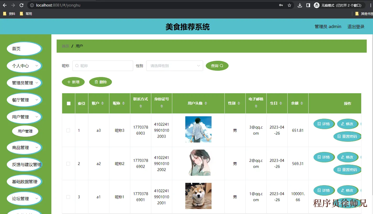图4.1 用户信息管理页面