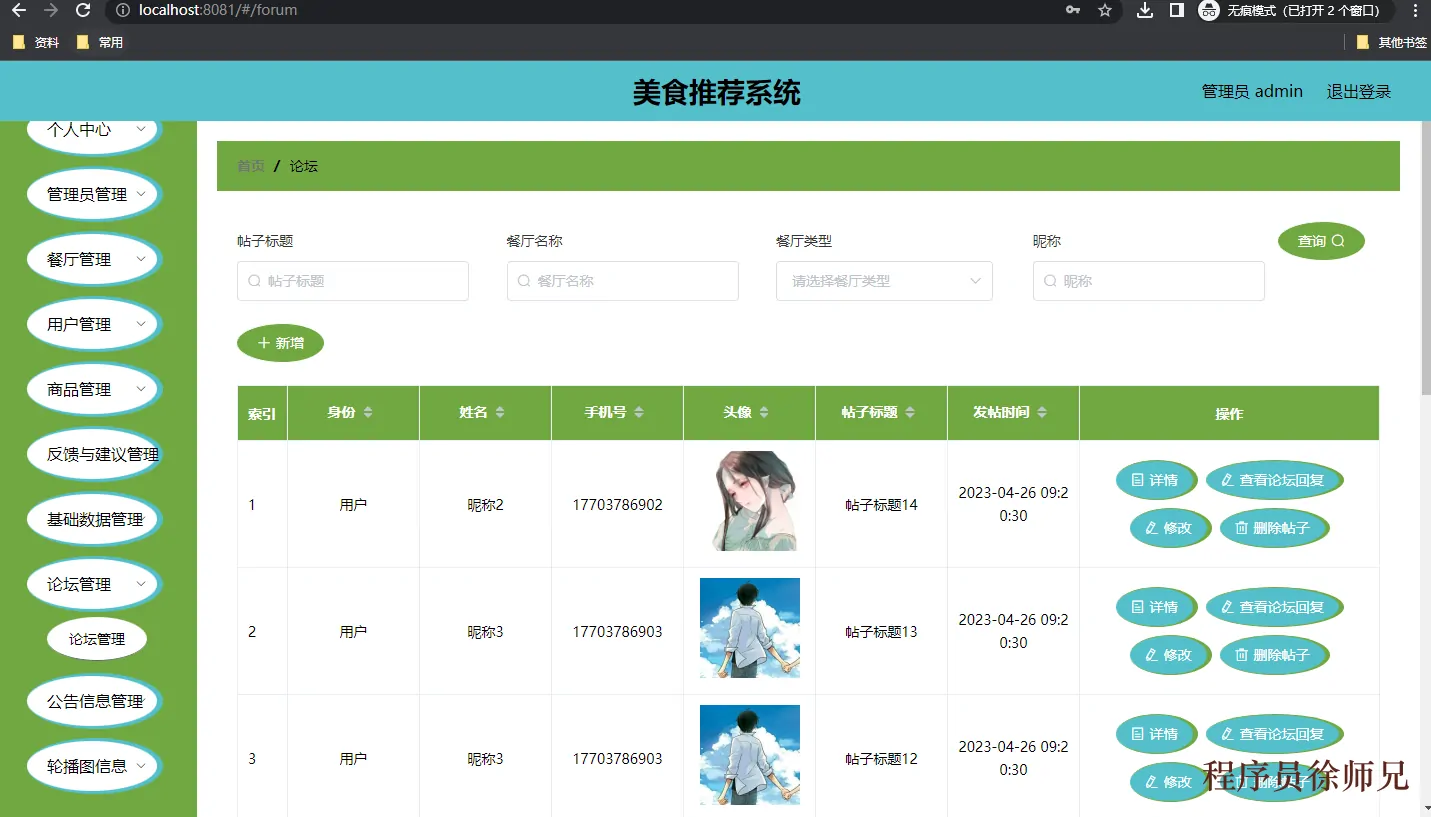 图4.4 论坛信息管理页面
