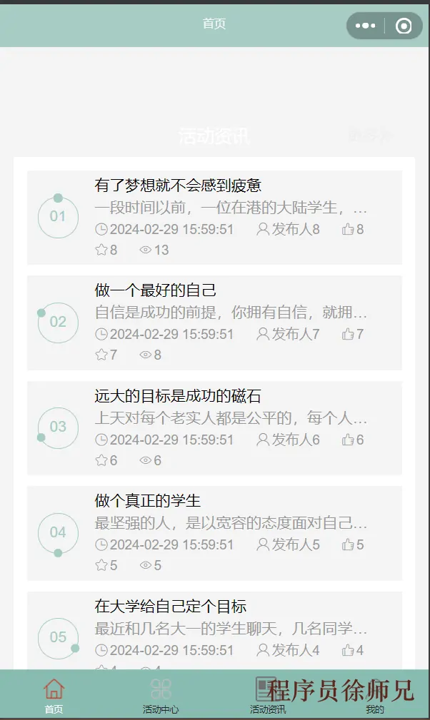 活动资讯部分展示最新的活动相关新闻和资讯信息,使用户能够及时获取最新活动资讯。如下图4.2所示。