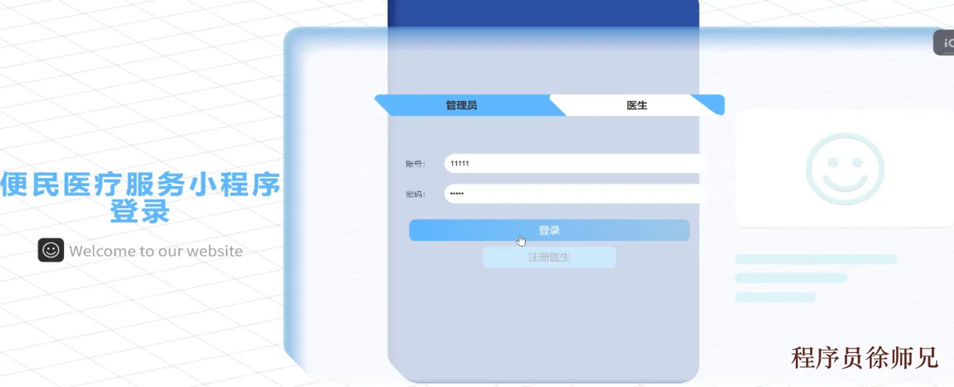 医生登录,在登录页面选择需要登录的角色,在正确输入用户名和密码后,点击登录操作。