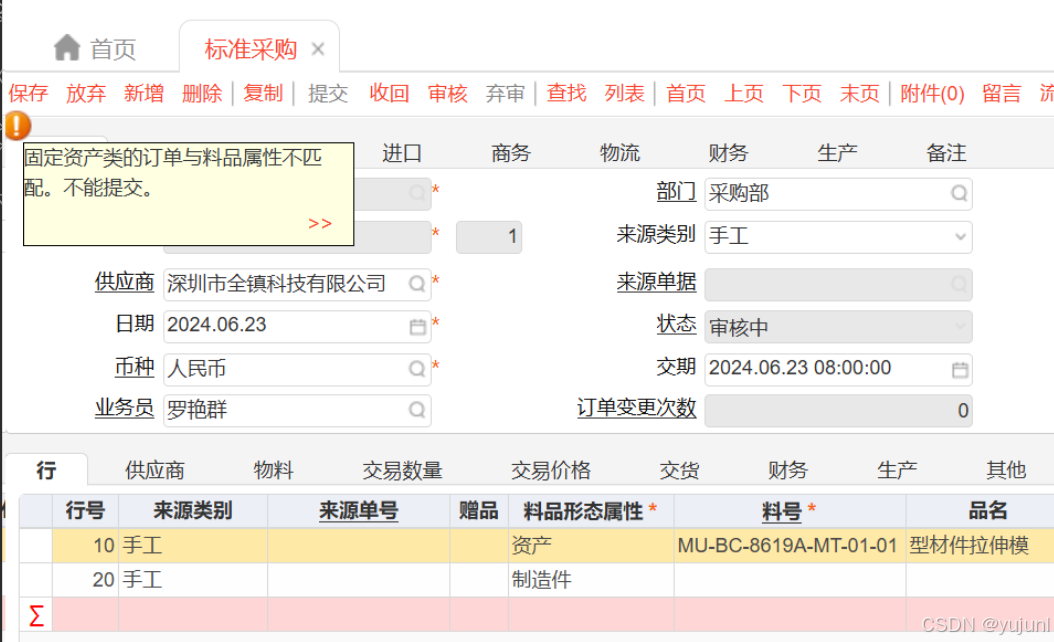 生产物料采购,因为排在首位的单据类型,页面上是默认的,用户经常在做固定资产采购时,单据类型没有及时改过来。入库时才能发现。此时往往不好处理。