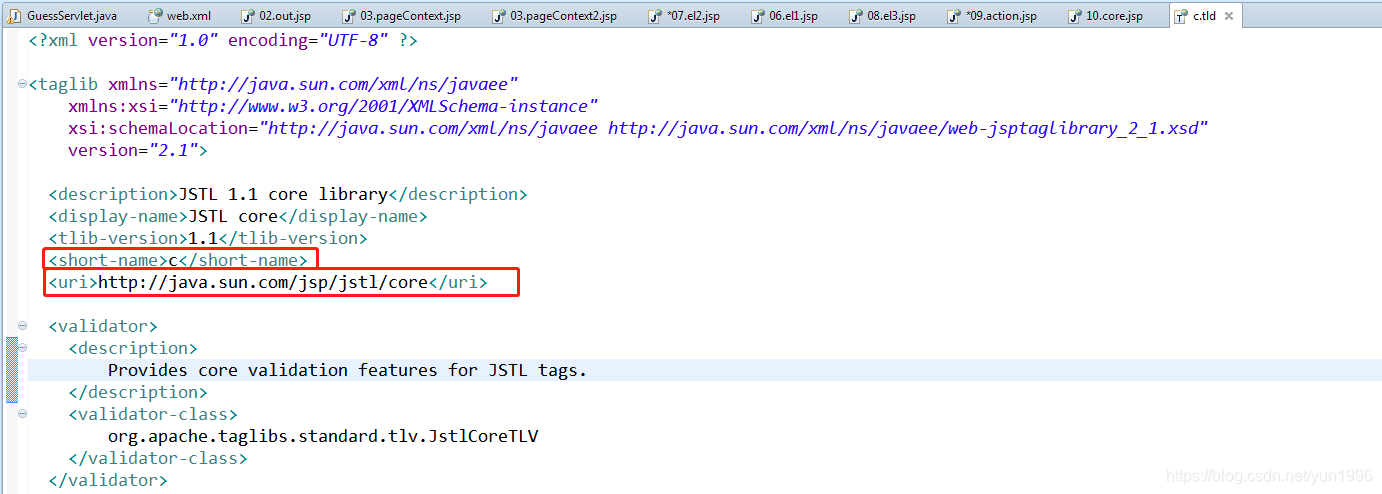 | <%--导入标签库 --%> <%@taglib uri="tld文件的uri" prefix="缩写" %>在jstl里面找到jar包,引入时uri和缩写的位置 <%@taglib uri="http://java.sun.com/jsp/jstl/core" prefix="c" %> |