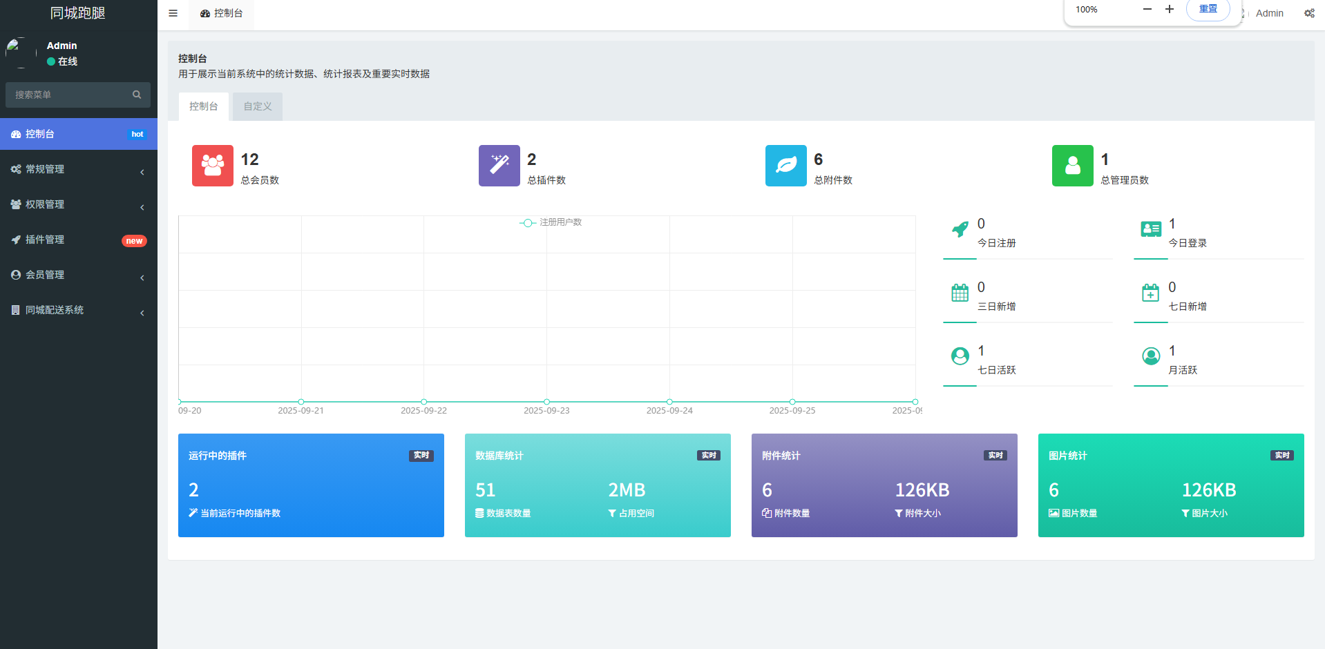 基于FastAdmin+ThinkPHP后端框架与uniapp跨端技术开发的同城跑腿小程序、同城派送系统,已完成主要核心问题修复,当前系统运行稳定,后台管理功能全面完善,可直接满足基础运营需求。