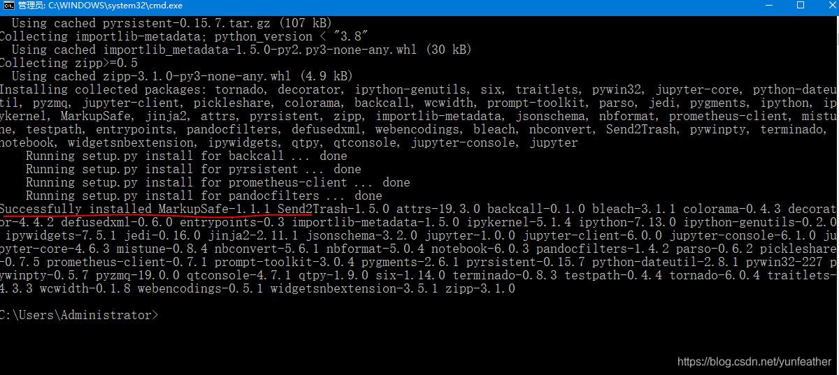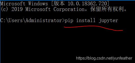 这时候pip可以使用了,接着使用pip install jupyter命令安装jupyter