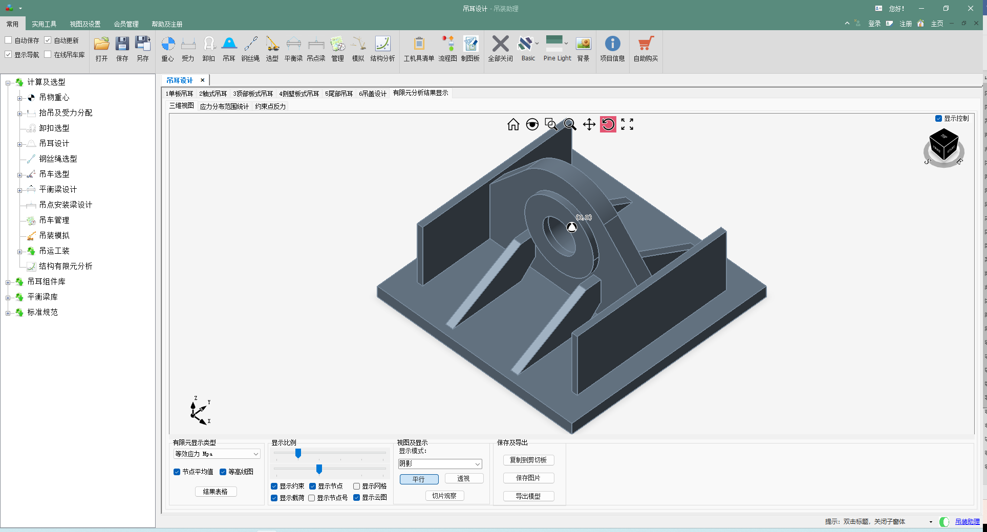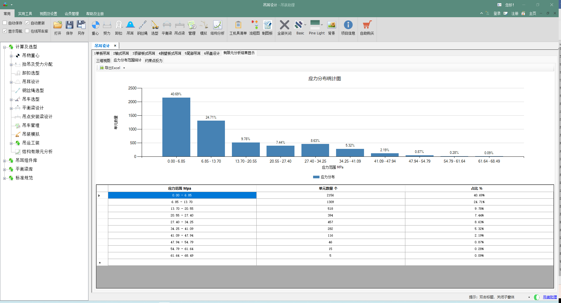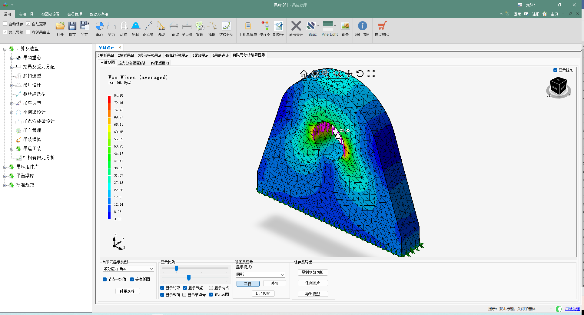 - 可进行多种形式的吊耳有限元验证分析和应力值的占比统计。