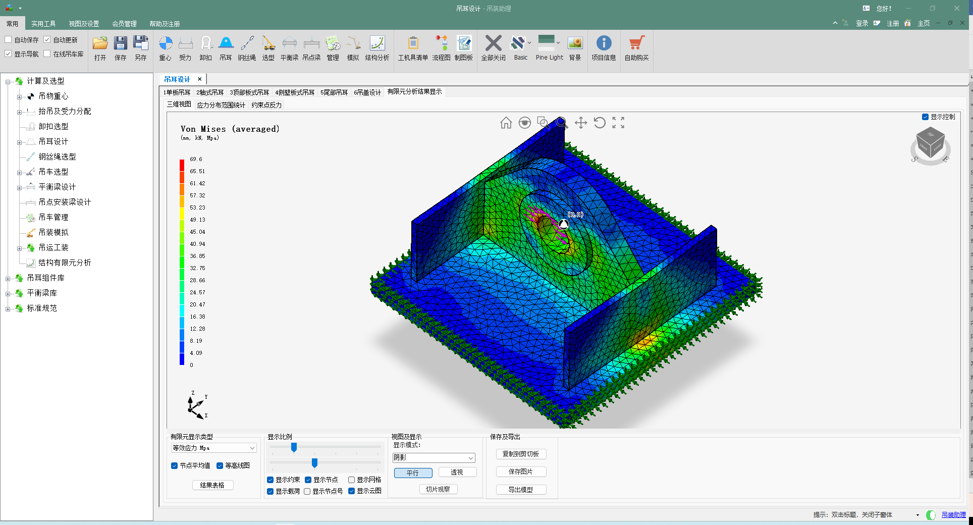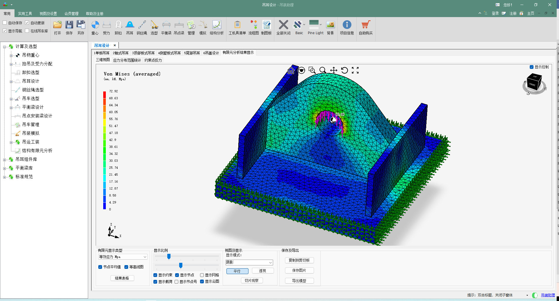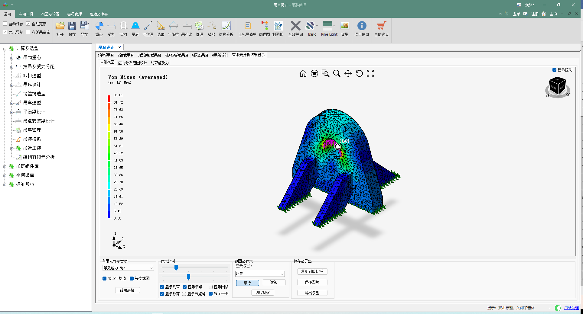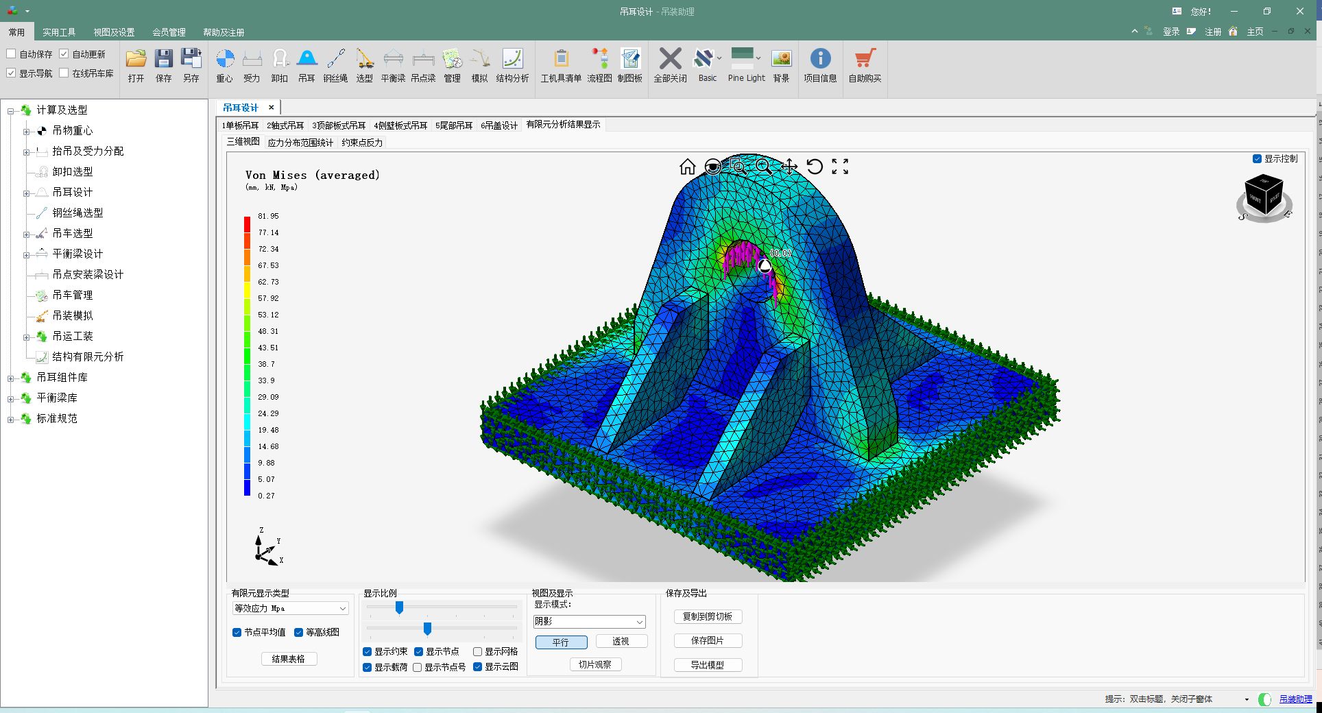 - 可进行多种形式的吊耳有限元验证分析和应力值的占比统计。
