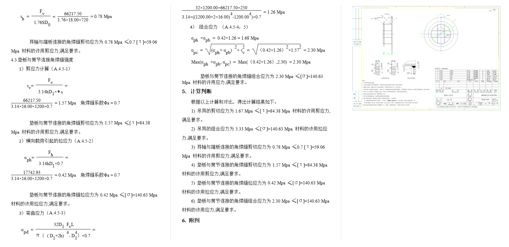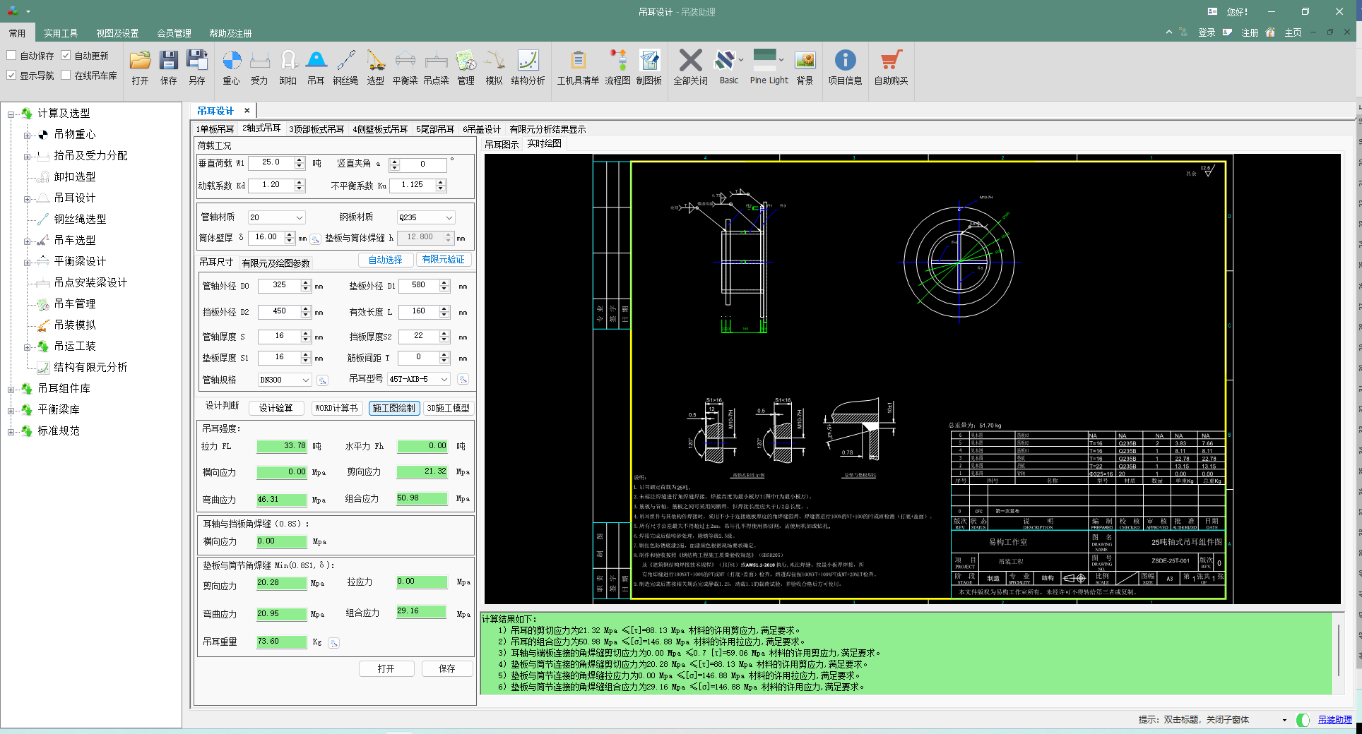 - 5. 可进行按规范进行吊耳零件和焊缝的计算检验,并实时绘制施工图,输出Dxf,Dwg等可编辑格式的图纸。