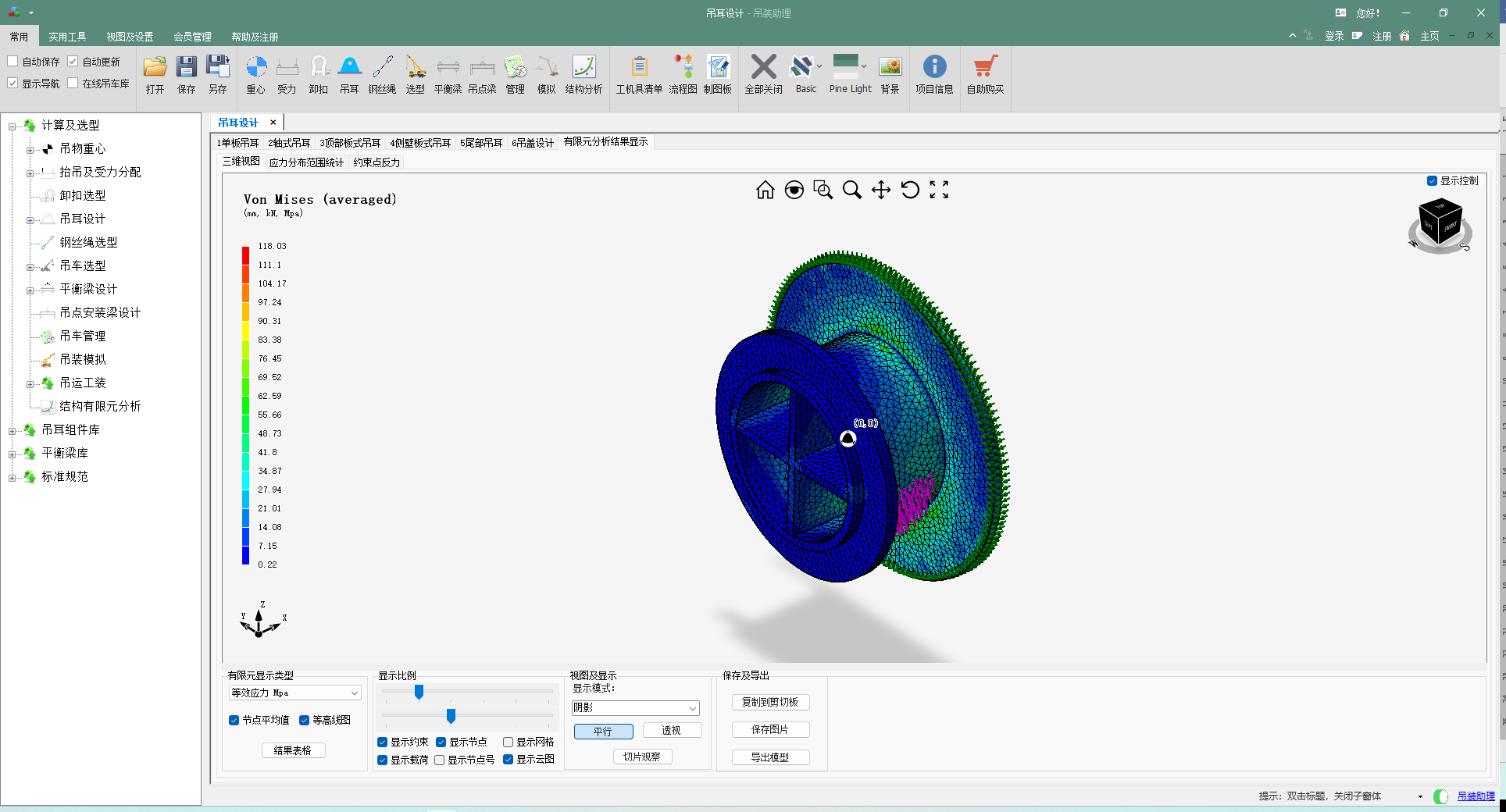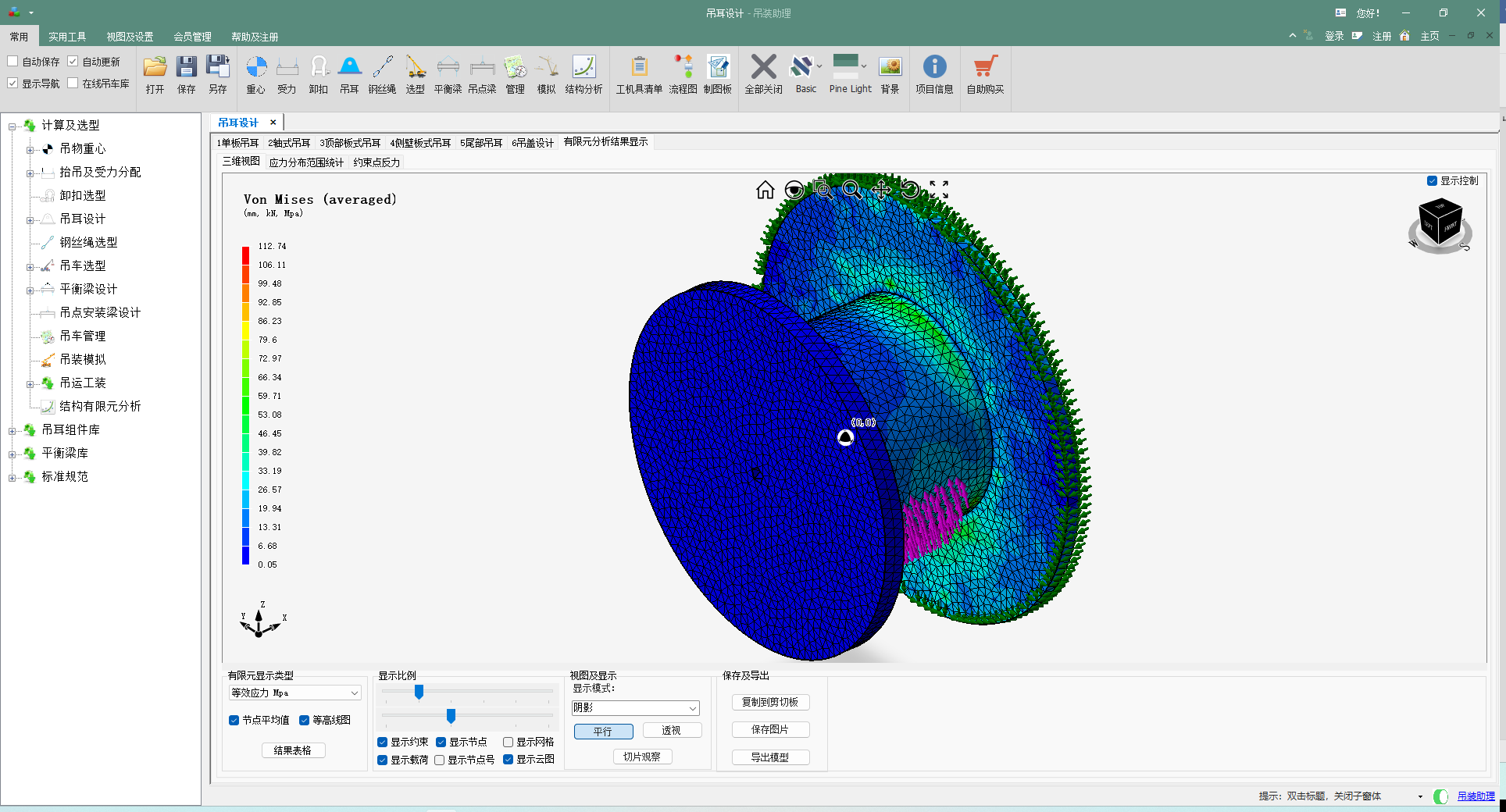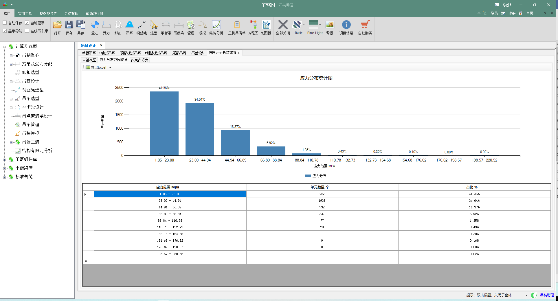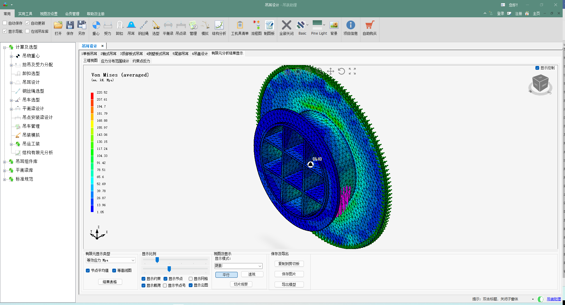 3.可进行多种形式的吊耳有限元验证分析和应力值的占比统计。