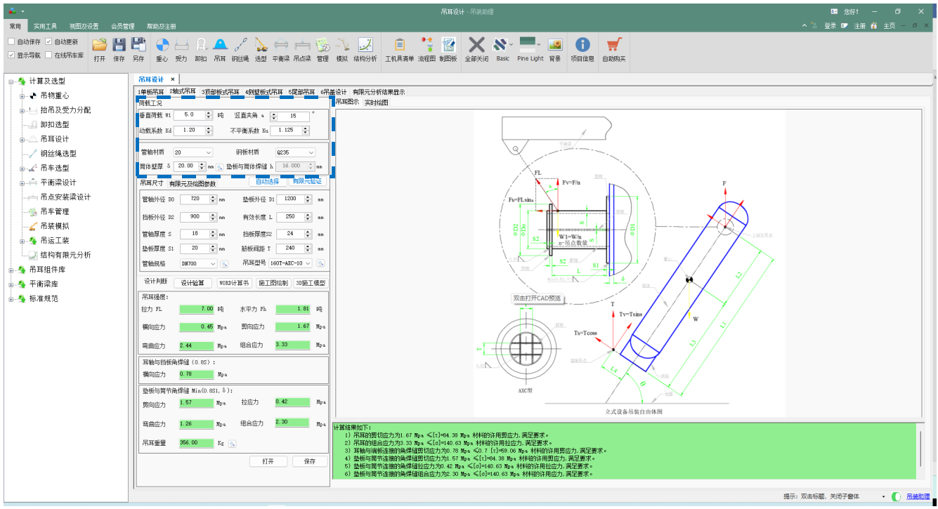 吊装助理软件的吊耳设计模块,具有如下特点和功能: