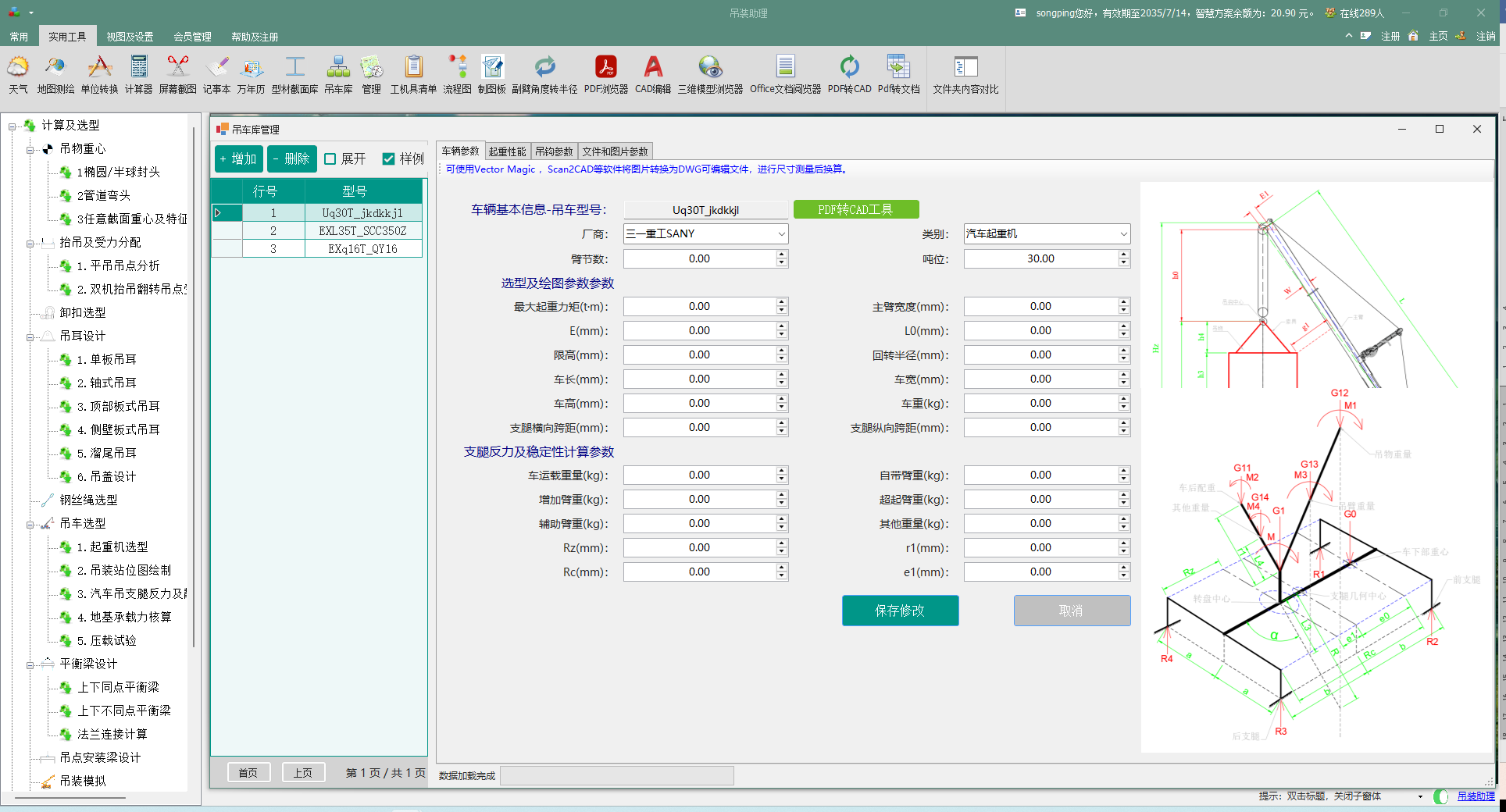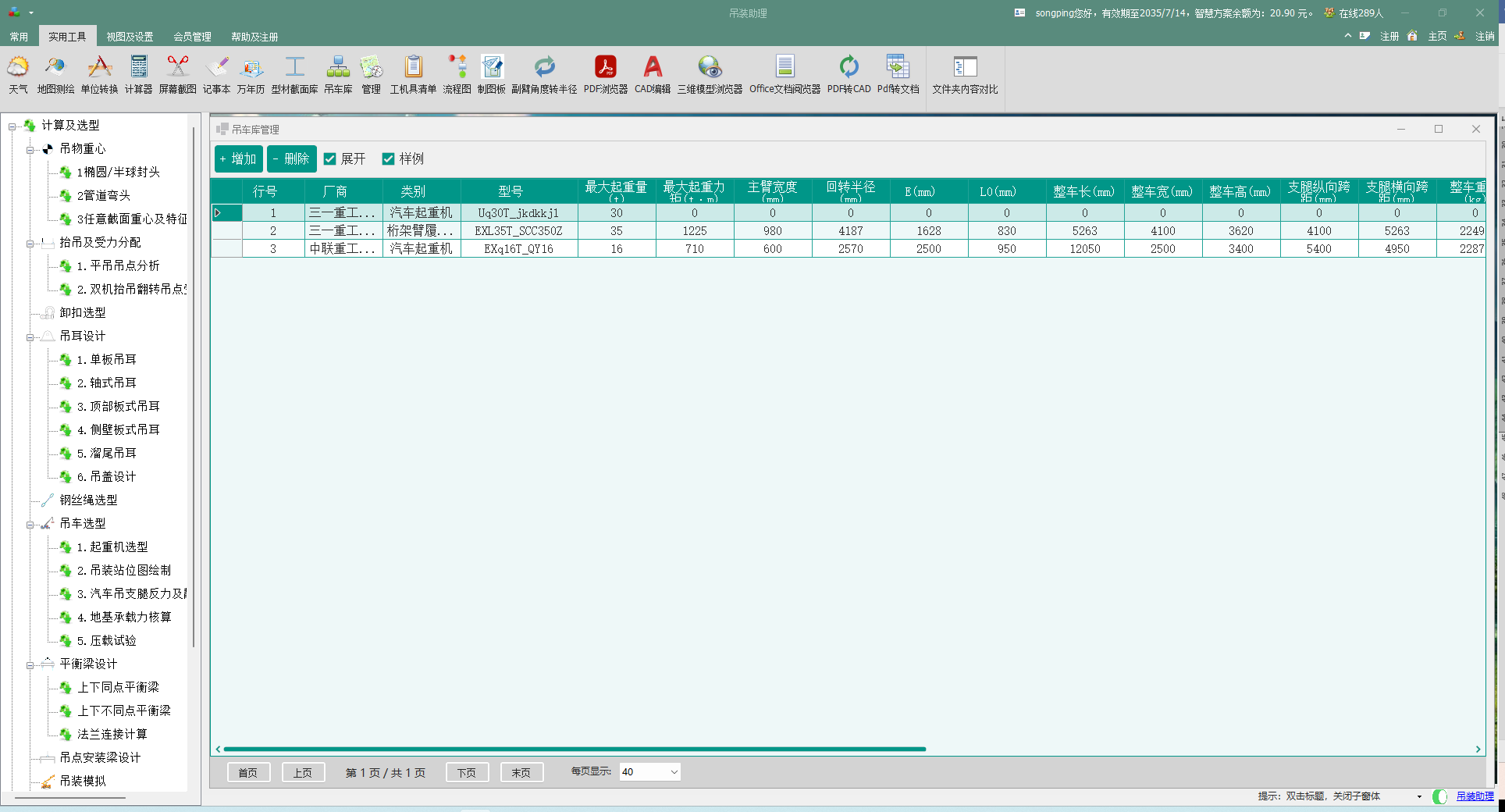 新增吊车库自助添加功能! 打破原有库的限制,您可以根据项目需求,轻松将特定品牌、型号的吊车参数自主添加到软件吊车库中。选型匹配更精准、更灵活,满足个性化工程需求!