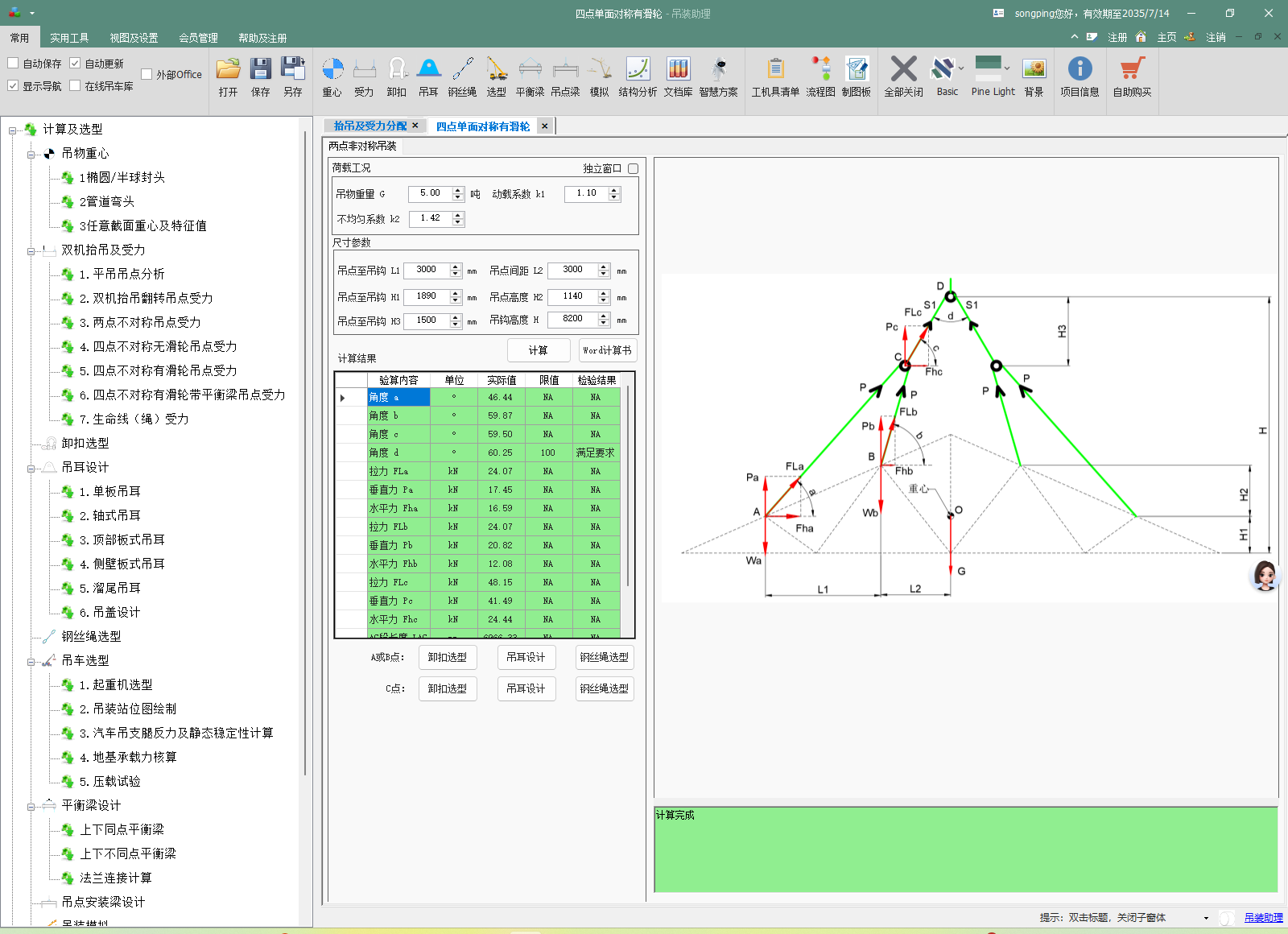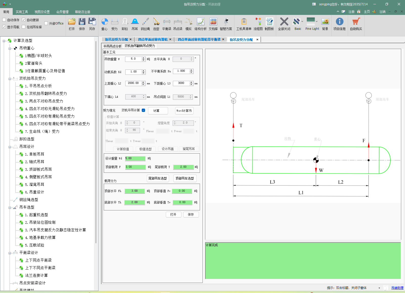 图7 双机抬吊受力分配(吊装助理)
