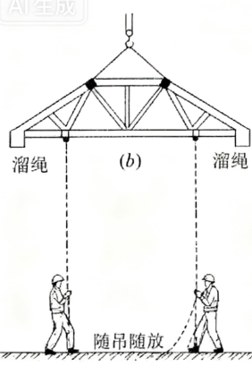 为啥要绑?起吊时桁架会随风晃,或者容易撞到旁边的柱子、脚手架,拉着溜绳能随时调整方向 —— 吊的时候慢慢放溜绳,让桁架保持稳定,不会乱晃。