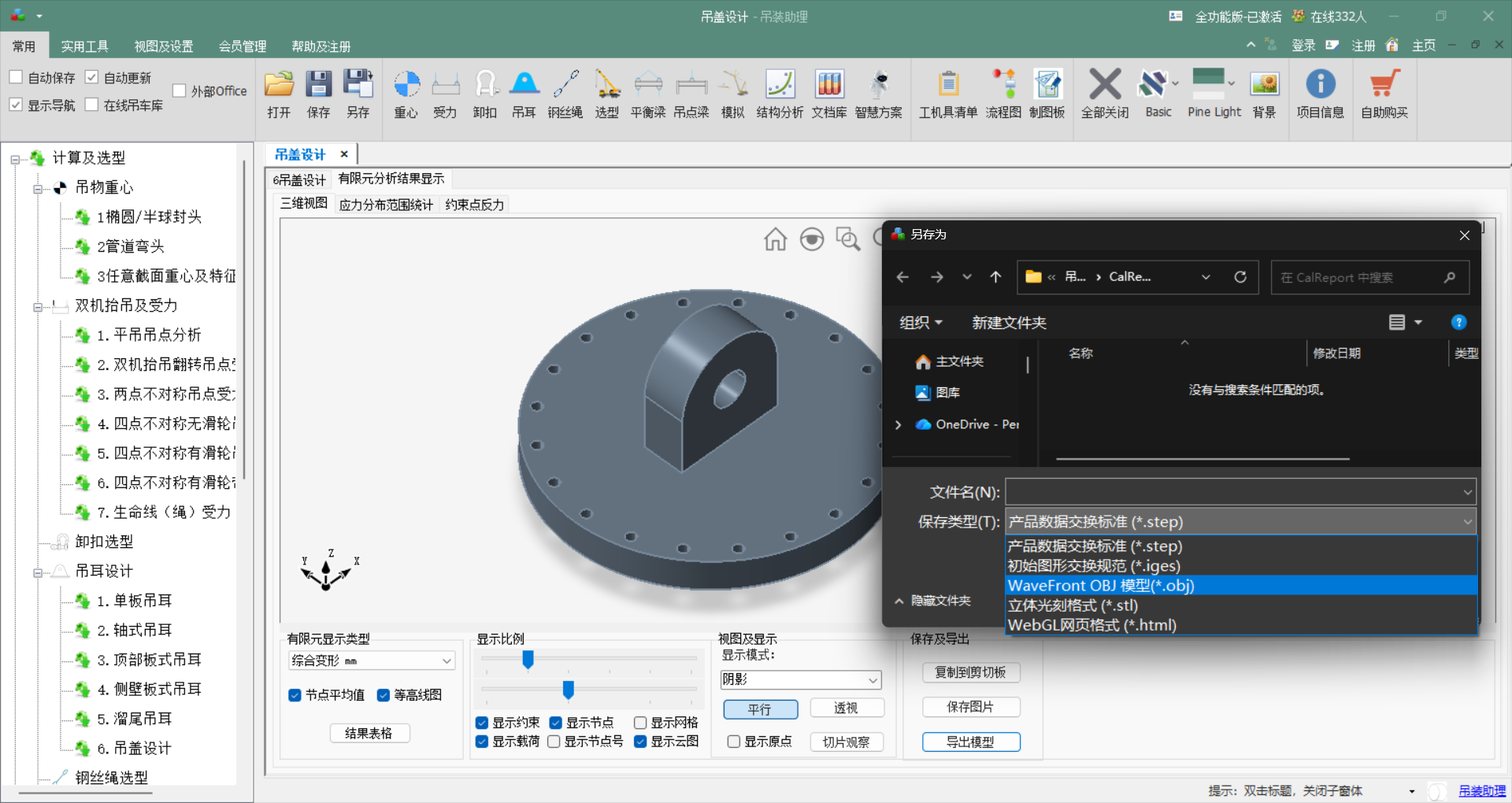 核心干货:模块内置了首创的吊盖外形自动设计算法。用户只需输入基本载荷与卸扣型号,系统即可基于内部强大的知识库和优化算法,自动匹配最佳卸扣,并一键生成最优的吊盖外形与结构尺寸。