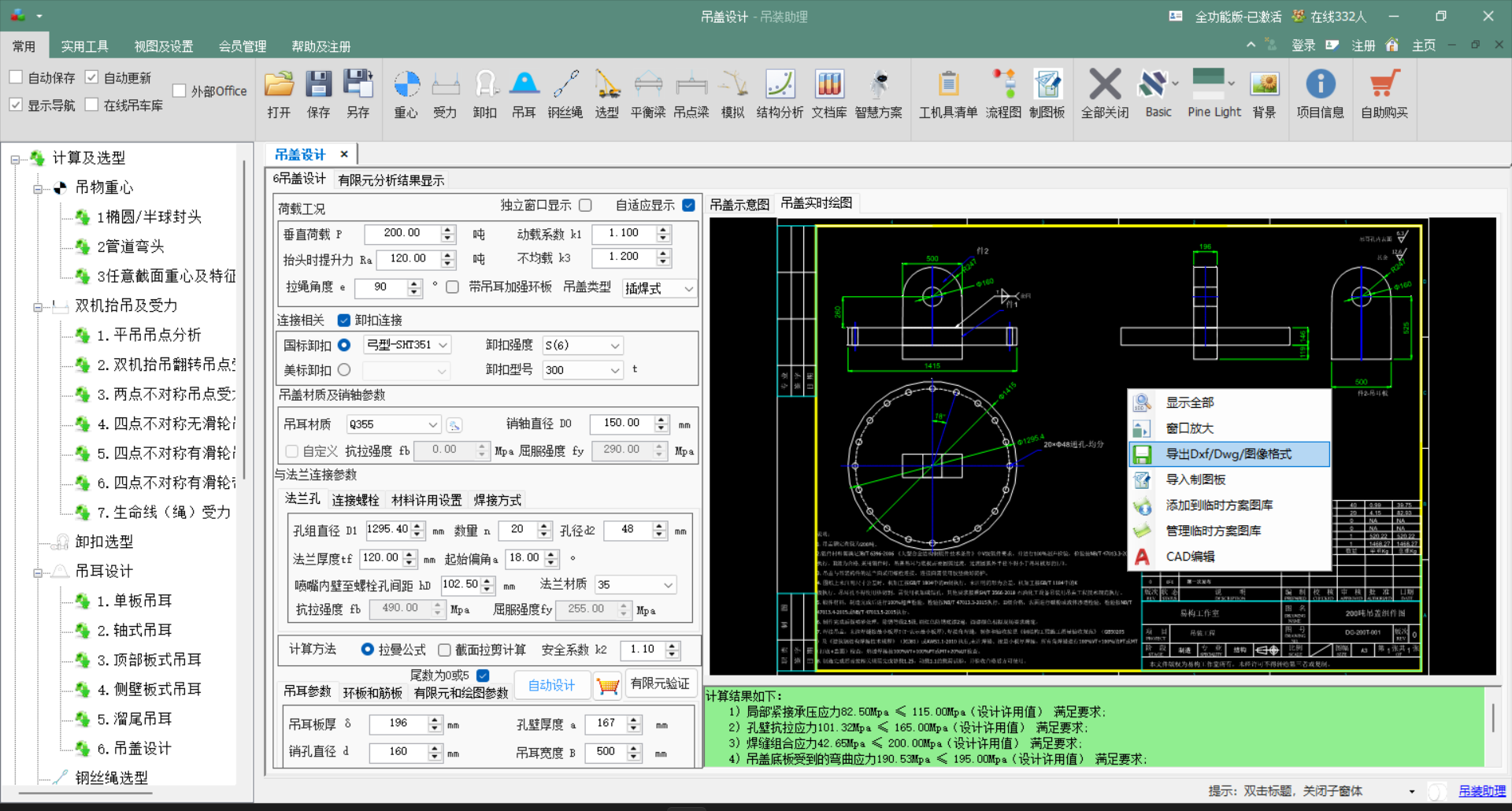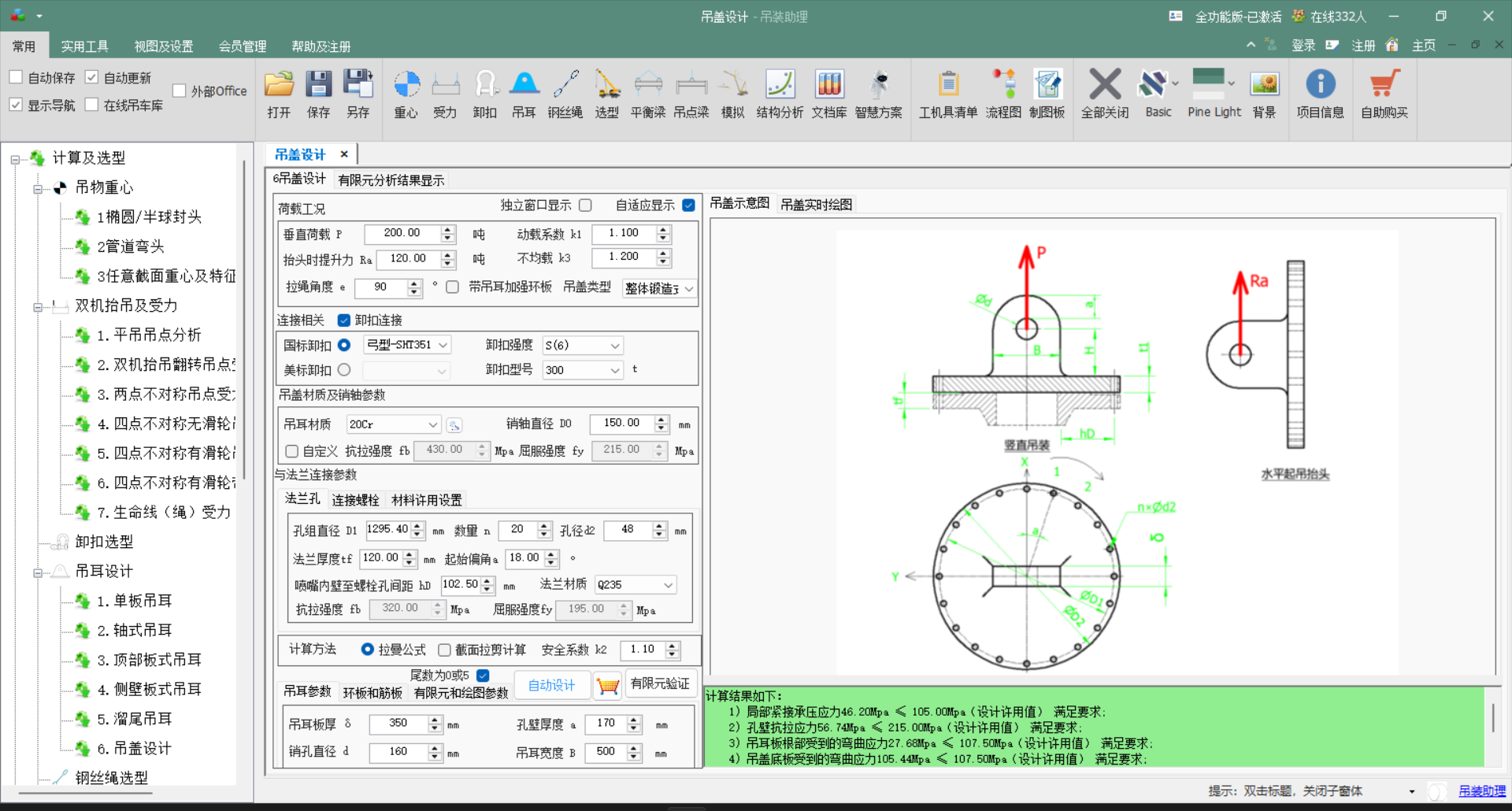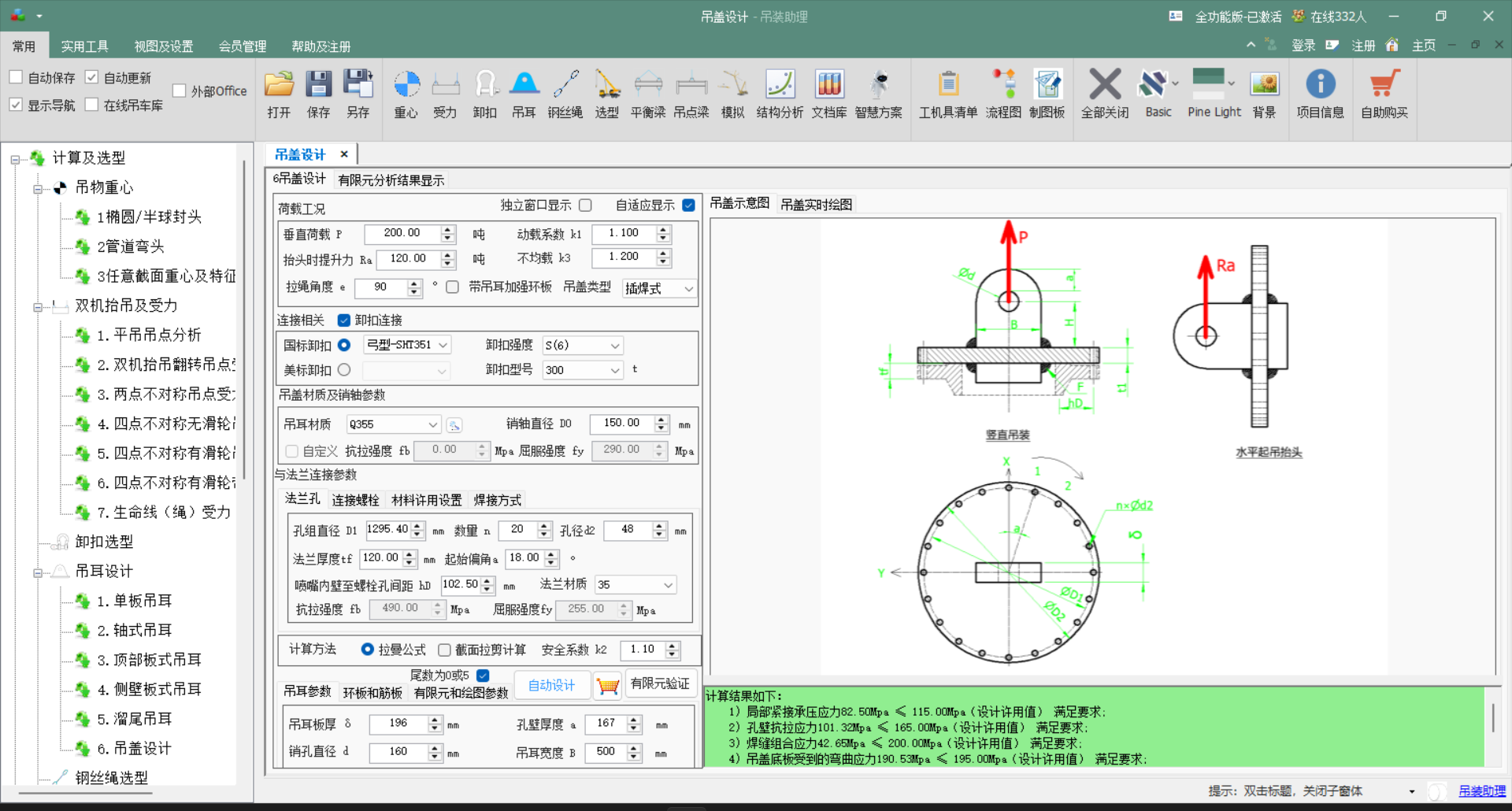 核心干货:无论是整体锻造式还是插焊式吊盖,模块均能覆盖其设计与选型。更重要的是,它能够自动完成对加强环板、连接螺栓、法兰等关键部件的多工况强度与刚度验算,确保设计在理论上的绝对安全。