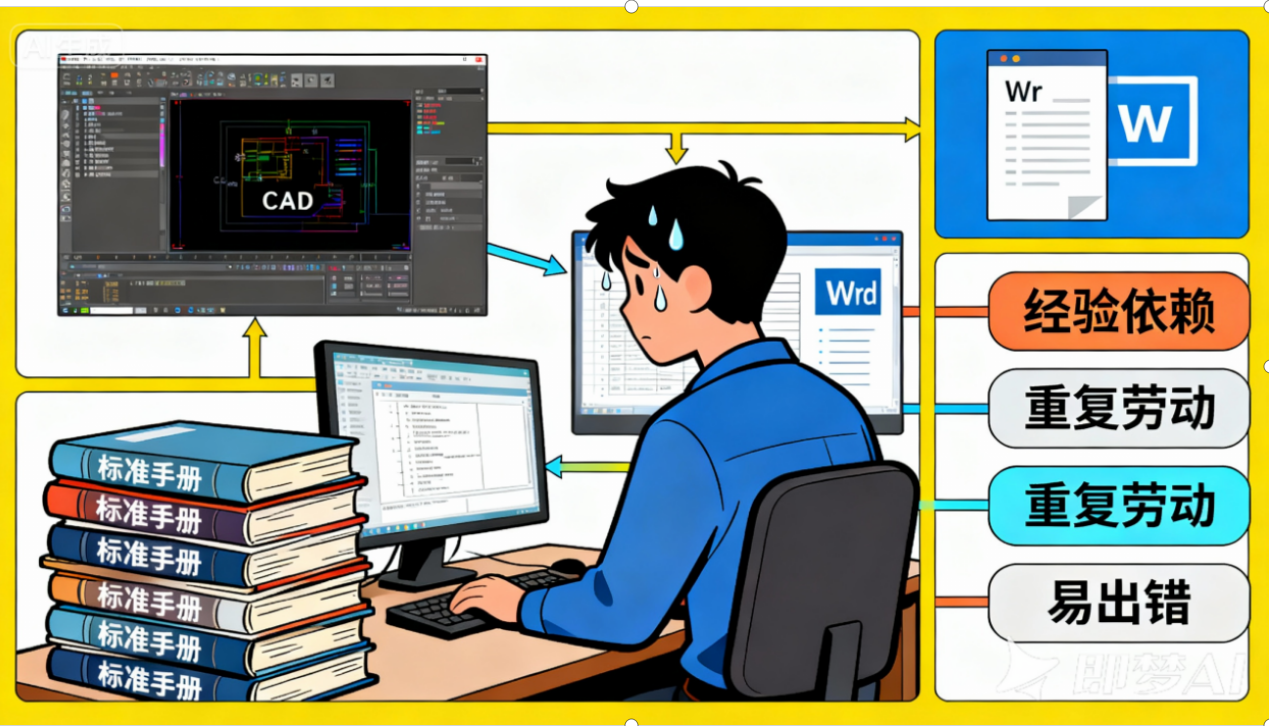 在传统设计模式下,吊盖设计是一项极度依赖工程师个人经验且繁琐重复的工作,痛点集中体现在: