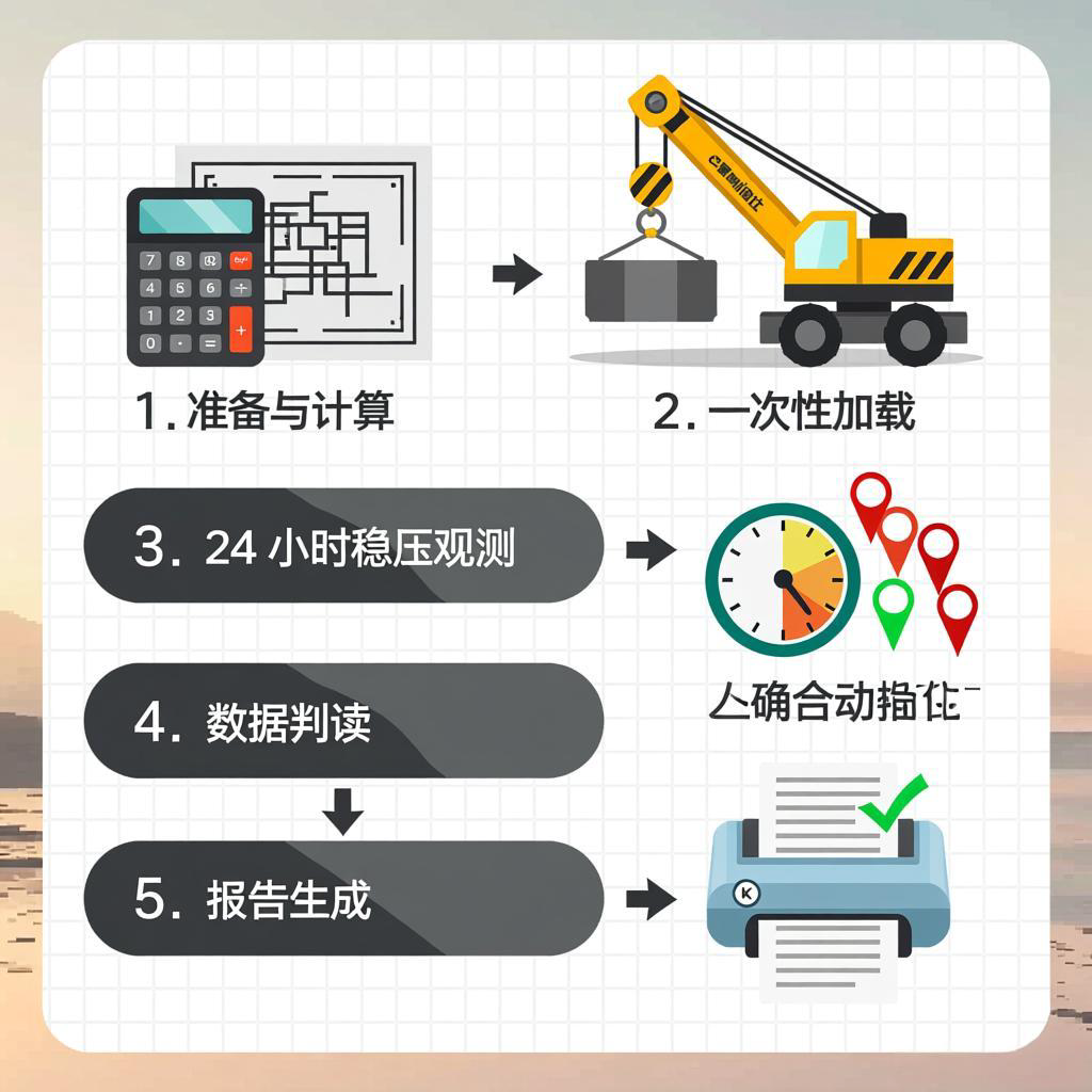 长期稳压观测:加载完成后,压重块连续静置 24 小时;期间需在压载开始、中期及结束时,用精密水准仪观测并记录地基沉降量。