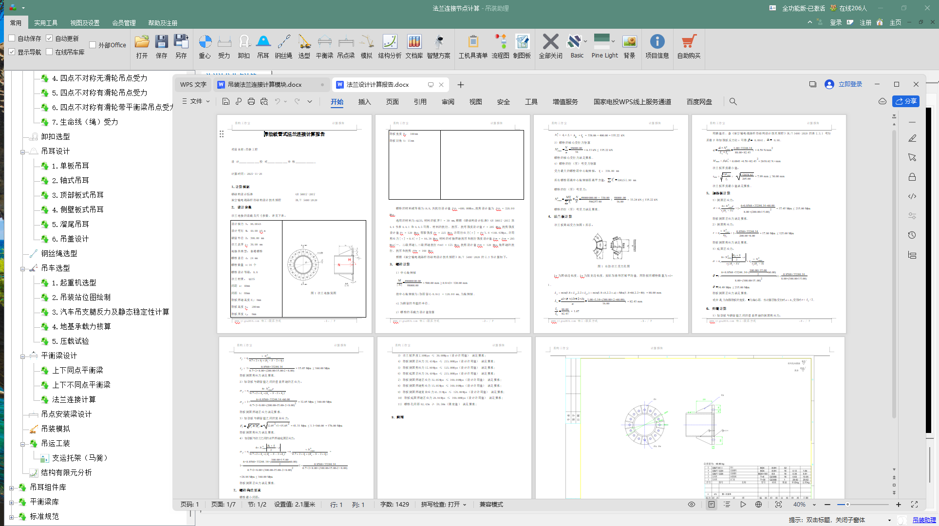 核心机制:模块自动生成符合 DL/T 5486 等吊装相关规范的 Word 计算书。计算书动态嵌入输入参数、受力简图、每一步计算公式与中间结果,并对最终安全裕量给出明确结论。