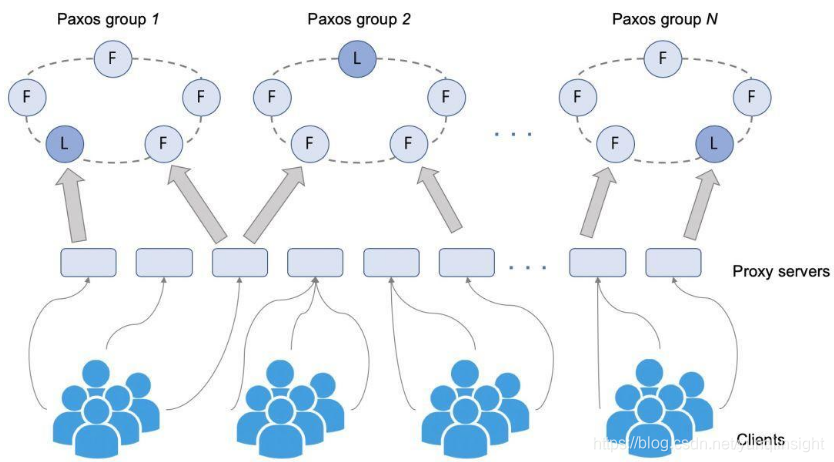 下图展示了该分布式协调服务的系统架构,后端是基于Paxos实现的一致性维护功能模块,前端代理客户端与一致性服务单元的通信,支持服务能力水平扩展性。由于后端分布式一致性服务单元由5台Master机器组成,可以容忍同时2台机器挂掉,因此上述报警均没有发现对服务可用性产生影响。但是,在短时间之内频繁发生单个Master服务进程异常,这个对于服务稳定性是个极大隐患,特别是对于作业调度强依赖分布式协调服务的某业务。由此,我们开始集中人力重点调查这个问题。