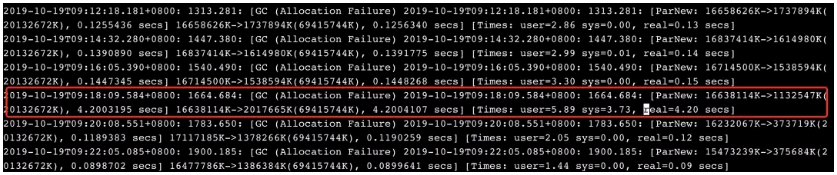 虽然我们的java程序申请的初始内存较大,但是实际分配的是虚拟内存,ParNew耗时太久一个很大可能性是机器上实际物理内存不足了。