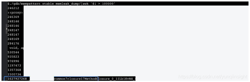 大神提供了一个内存泄露排查工具(说明一下,这个工具基于规整的tcmalloc的内存管理方式来分析的),通过符号表找到每个vtable,因此可以知道虚表地址,即每个虚函数类的对象前8字节的内容,这个工具厉害的地方在于摆脱了gdb依赖,直接根据应用程序申请的所有内存块分析,找到所有泄露内存块地址,进一步统计出每个虚表对应类的对象数目。具体这个工具实现细节不再赘述,最终我们统计出来的所有出现频率超过10W的虚表信息,找到了罪魁祸首:这个common::closure的对象泄露了高达16亿+。