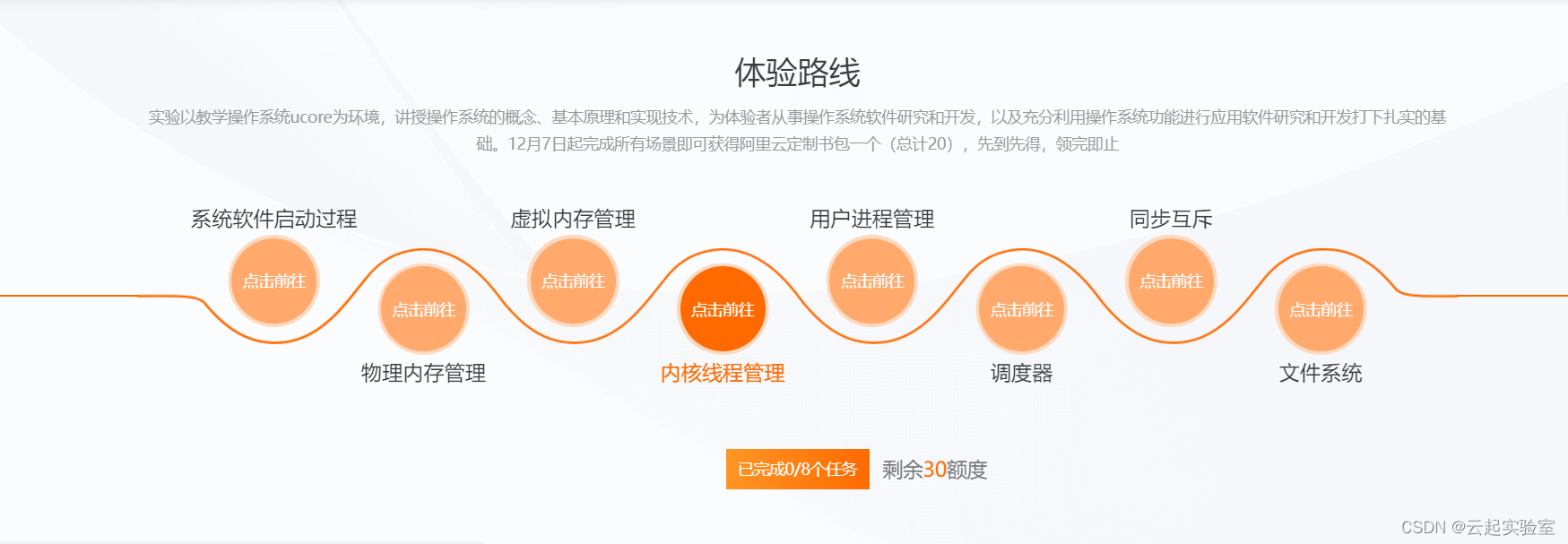 云起实验室推出操作系统ucore体验活动,参与者可动手实践操作系统的核心概念和技术,包括系统启动、物理内存管理和虚拟内存管理等实验。完成全部场景的用户将有机会获得限定礼品。点击链接开始操作系统的世界之旅。