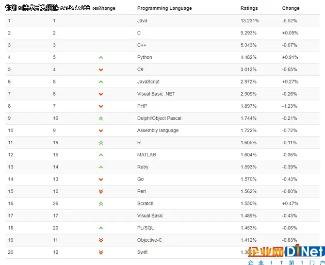 不久之前,脚本语言风靡一时。动态类型语言不仅易于编写,并且易于运行,像Perl、Python、PHP和Ruby这样的语言在网站上非常流行。但是,仔细看看2017年11月的TIOBE指数,又能看出另一个不同的故事。