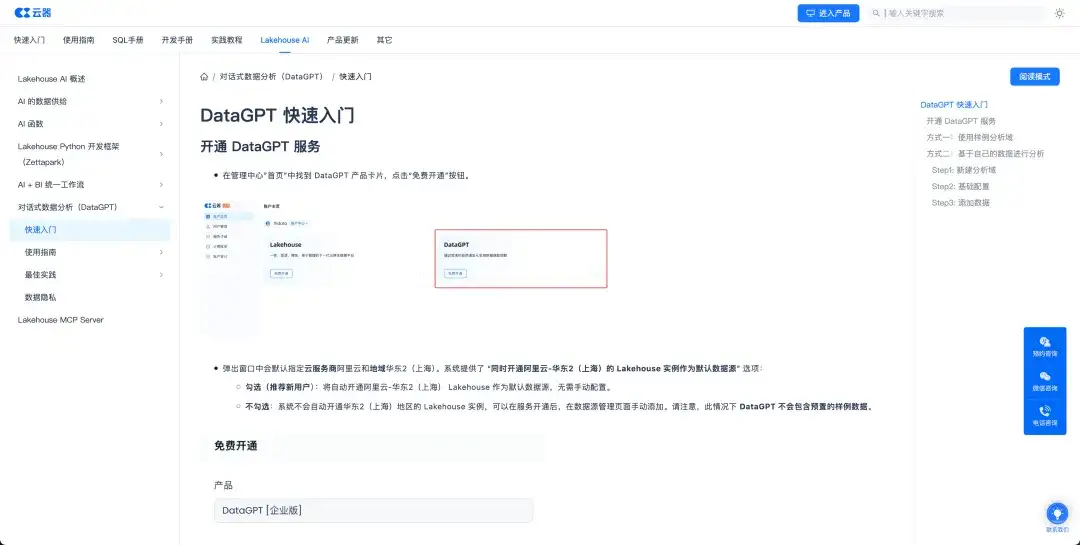 产品帮助文档作为辅助理解产品设计和上手使用的重要参考,我们投入了非常多的时间来持续完善和建设。随着产品的GA,产品文档在我们的官网中也随之完全公开可访问。在过去的几个月时间,我们在快速入门、使用指南、实践教程和AI相关能力等多个方面,对文档进行了大幅的完善更新。
