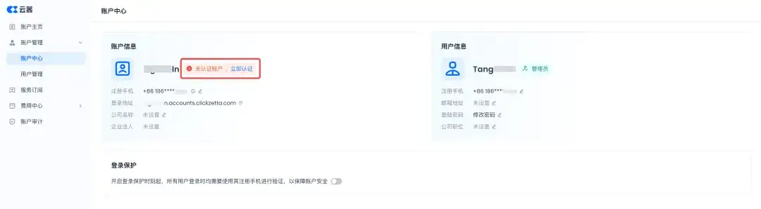 - 账户管理:云器科技-文档