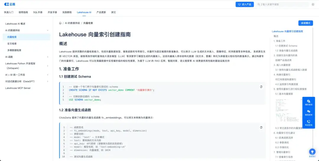 - Lakehouse 向量检索:云器科技-文档