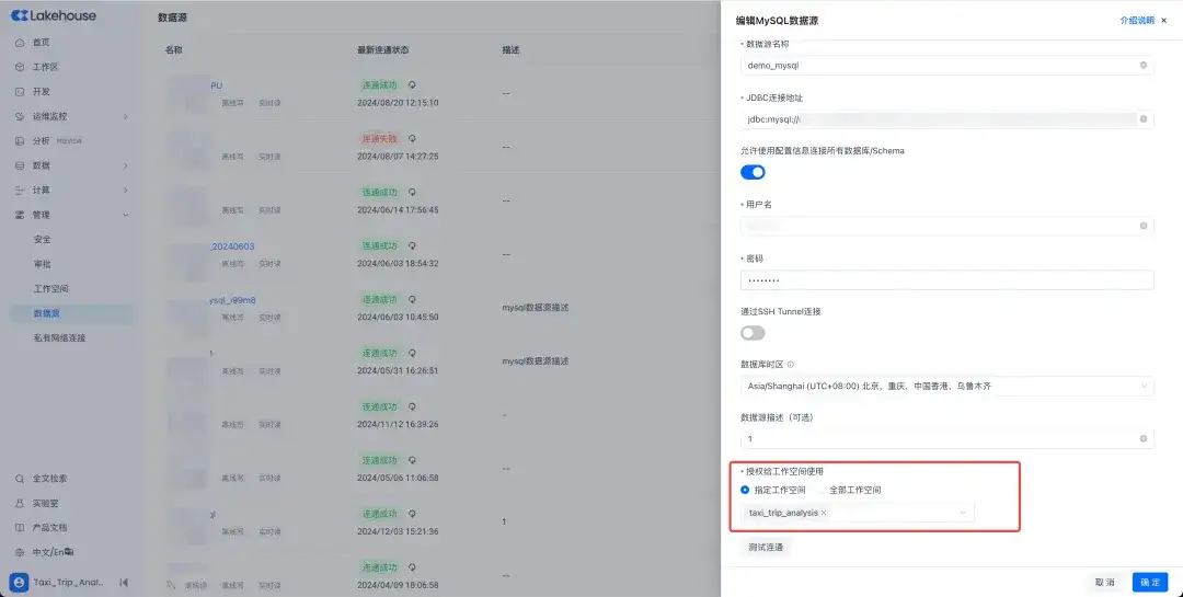 存量数据源上支持的功能也得到了较多扩展。SLS离线数据集成新增时间参数传递功能,支持通过API参数精确指定数据消费的开始时间和结束时间,实现更精细的数据同步控制。导出到AWS S3的CSV文件功能,新增制表符分割支持,满足不同数据处理工具的多样化导入需求。DynamoDB数据源新增用户自定义字段类型设定功能,支持更灵活的数据类型映射和处理。此外,数据源的级别从原有的工作空间级别提升为服务实例级别,支持既可以但工作空间独享,也可以共享给实例下的其它工作空间使用。