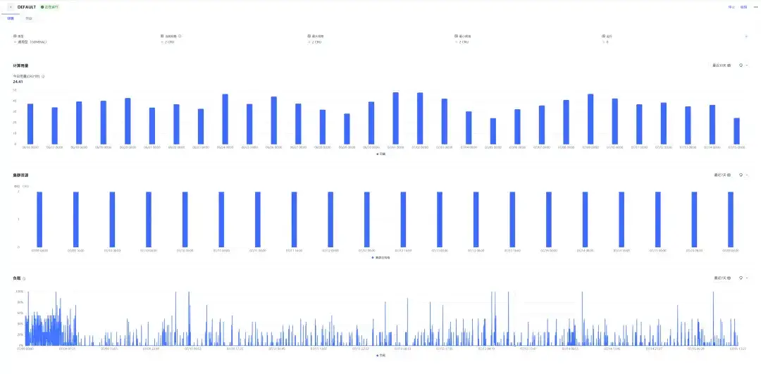 计算集群(Virtual Cluster)是Lakehouse中作业负载的核心算力支撑。在近期的版本演进中,集群详情页在原有的集群规格、状态等信息展示的基础上,大幅演进了配套的监控能力,比如新增了集群的用量(CRU)消耗趋势、集群规格的变化历史、集群上运行的作业的统计情况和列表详情等,可大幅提升对集群的观测性、为灵活调整规格大小等提供指导性数据依据。