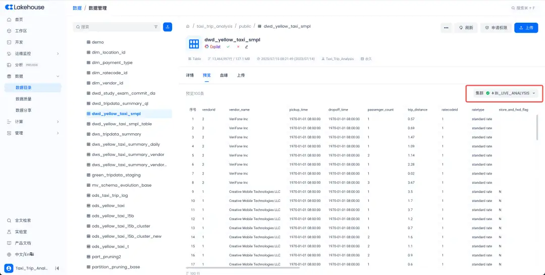 数据预览的集群自由选择功能:新增支持用户选择当前实例下有权限使用的任意集群进行数据预览,打破仅能使用表所在工作空间下的集群的限制,会更加灵活方便,解决用户不在表所在工作空间就无法预览数据的问题。